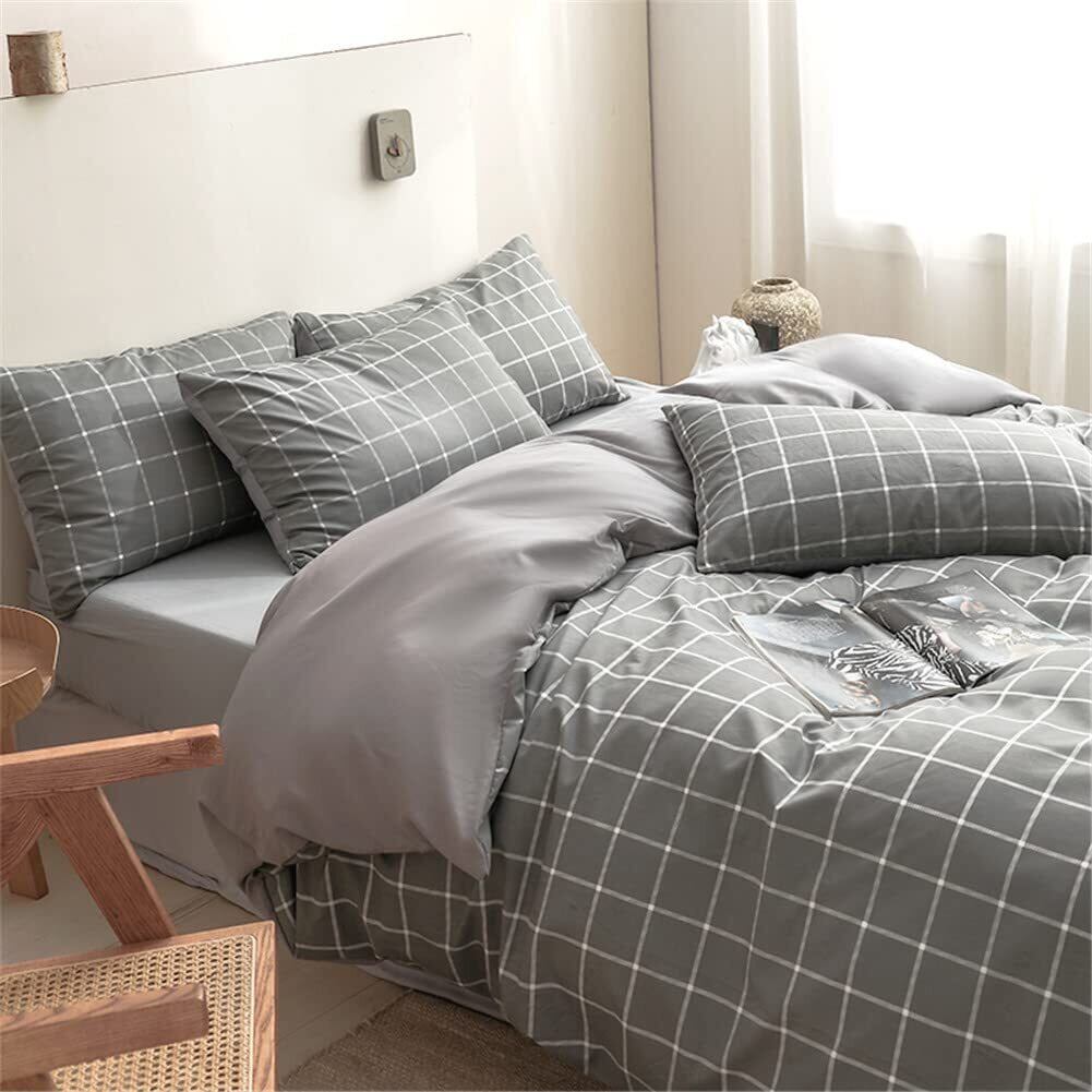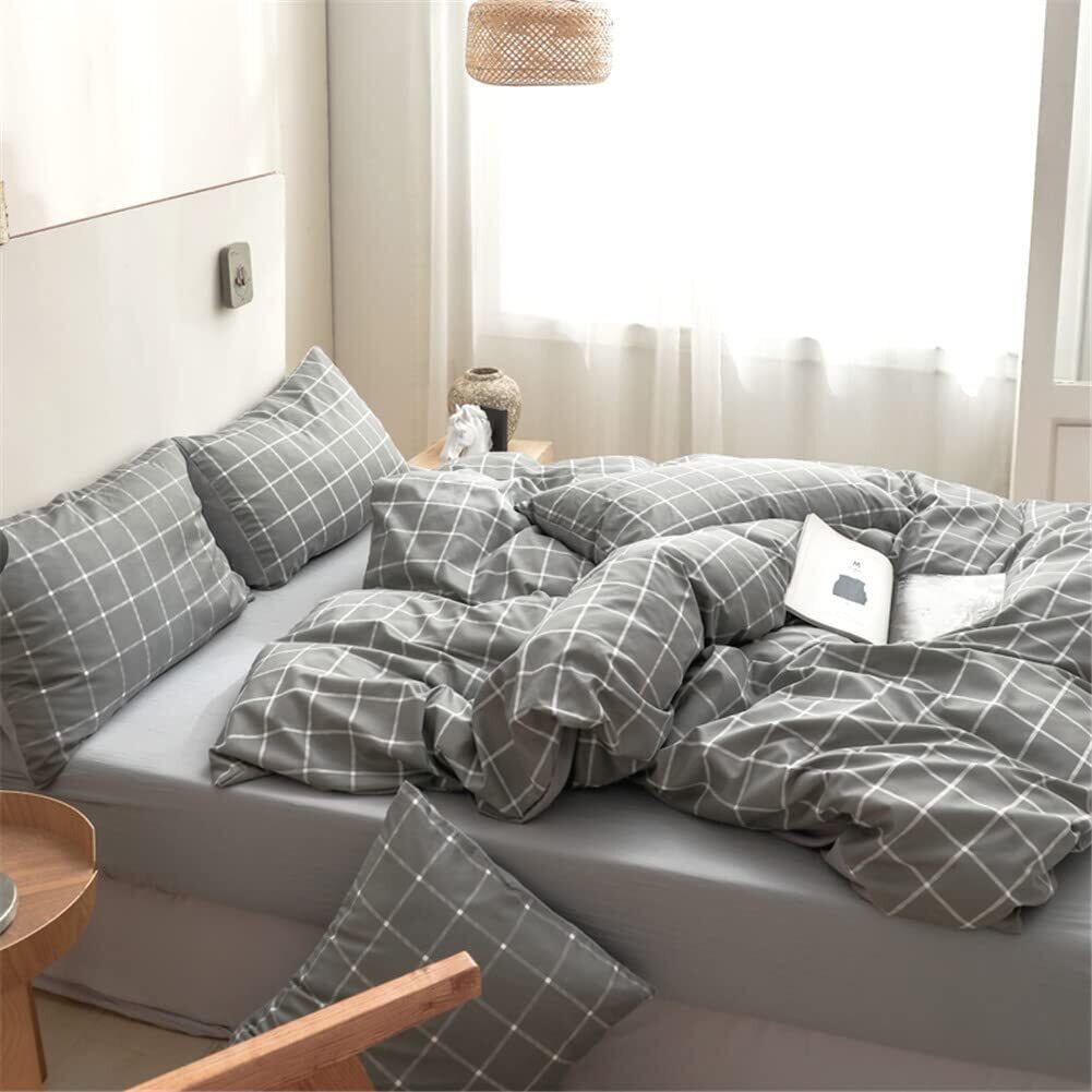 掛け布団カバー 布団カバー シングル 150×210cm チェック グレー 柄 8ヶ所ヒモ付き 掛ふとんカバー 掛けふとんカバー ふとんカバー 洗える 抗菌 防臭