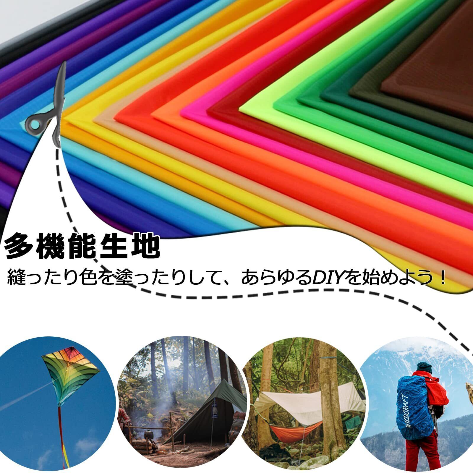 【多機能生地】リップストップナイロン生地は凧を作ることができるだけでなく、様々な場合にも適用できます。例えば、風向計、DIYリュック、旗、横断幕、蓋、ピクニックマットなどです。生地は自由に裁断、縫製できますので、作りたいDIYアイテムを作りましょう!