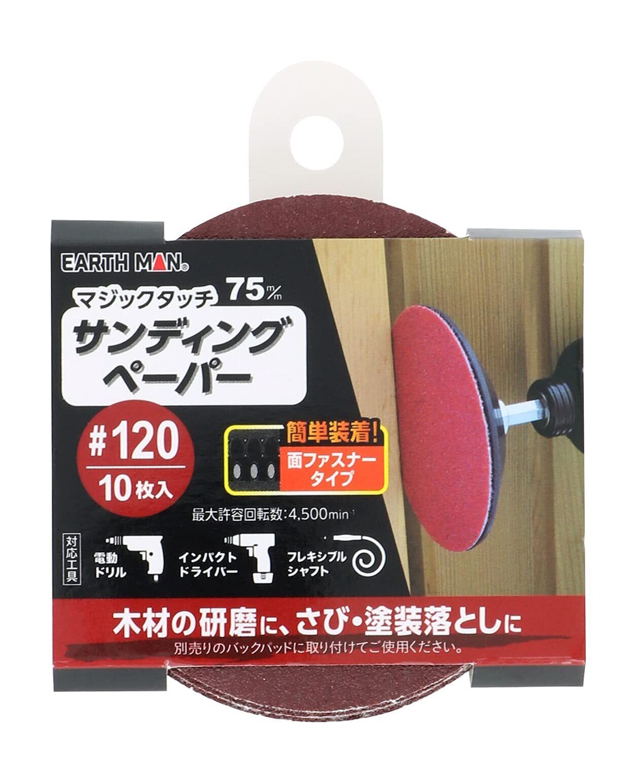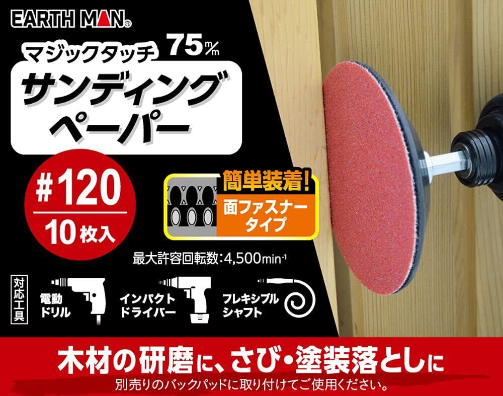 高儀(Takagi) EARTH MAN マジックタッチ75mm サンディングペーパー 10枚入 #120