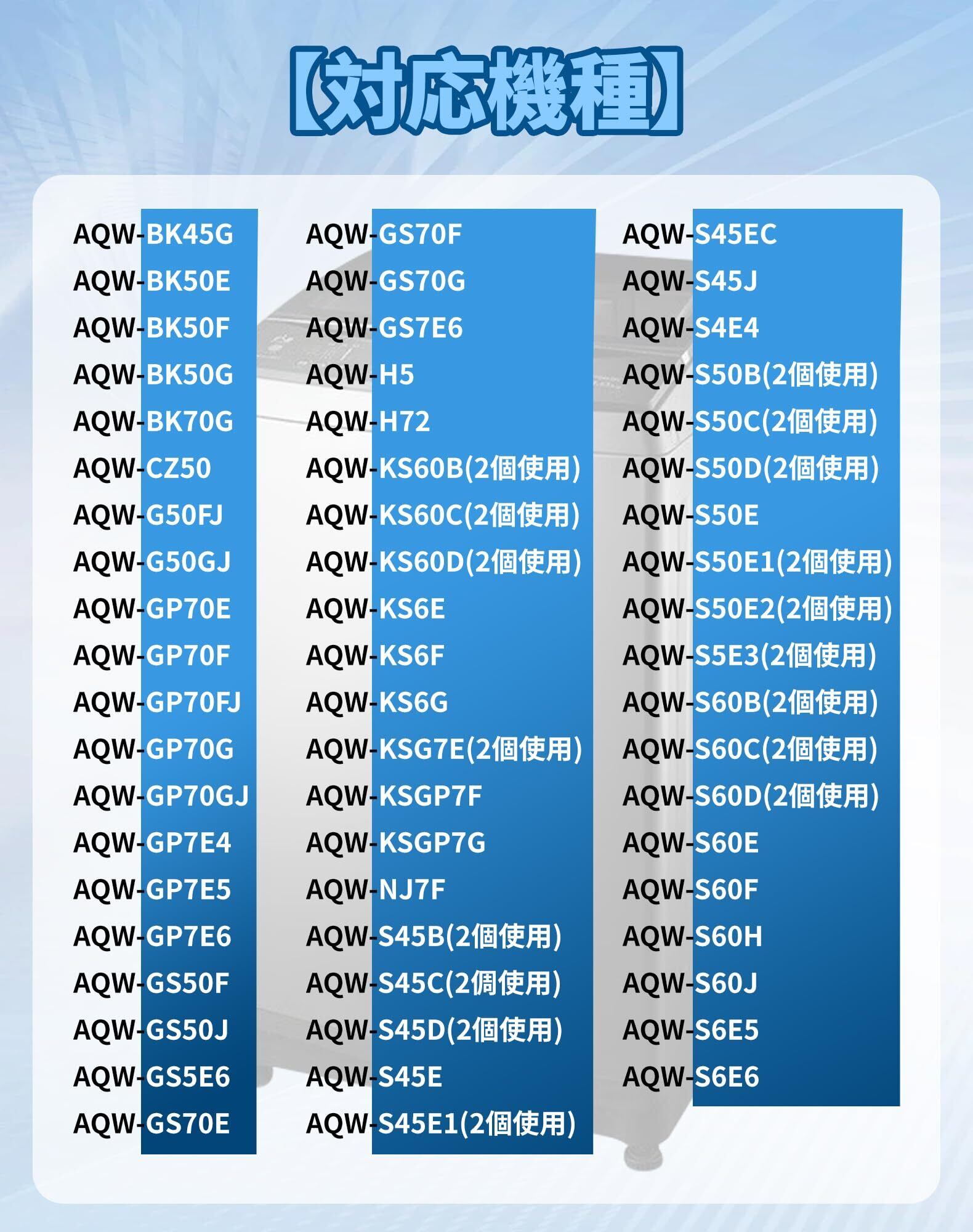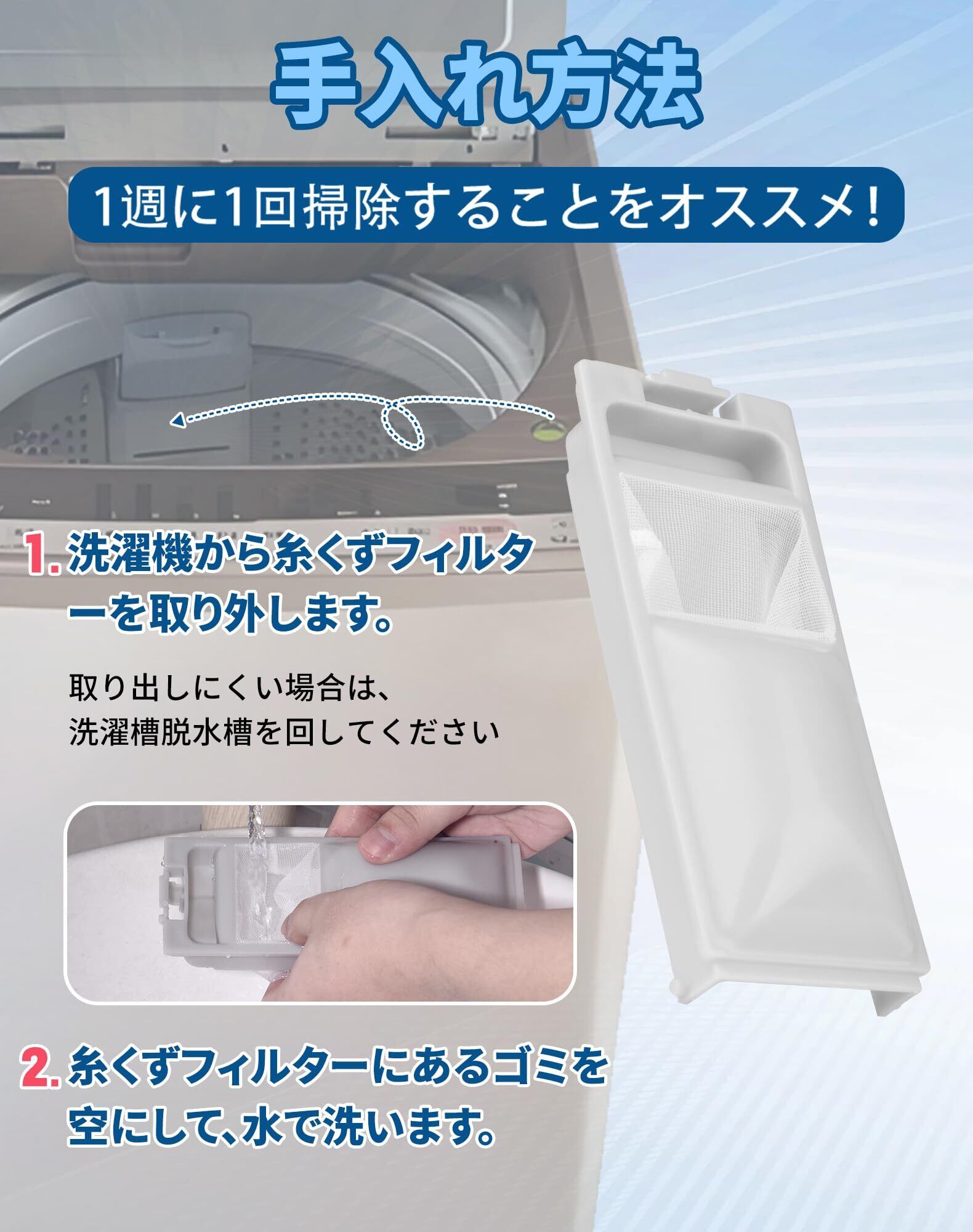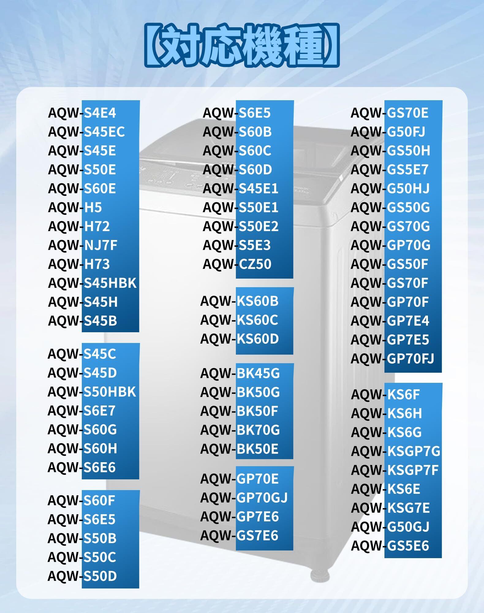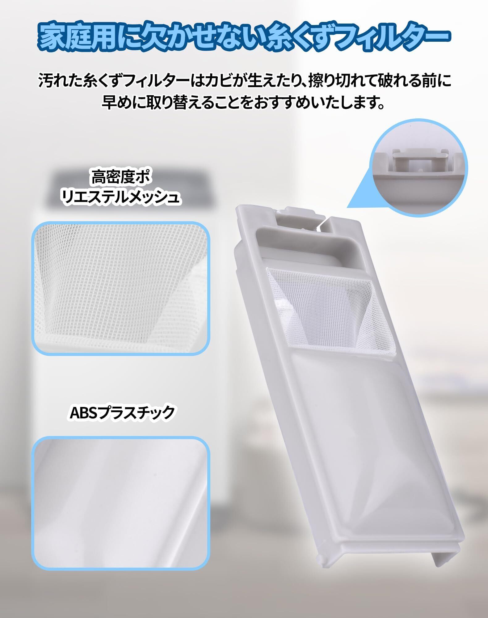 【注意点】本製品は純正品ではなく互換品です。必ずご自身の洗濯機に対応しているかご確認ください。生産ロットの違いによって、色や形が若干異なる場合がございますので予めご了承下さい。モニターの発色の具合によって実際のものと色が異なる場合がございますが、ご了承くださいますようお願い申し上げます。