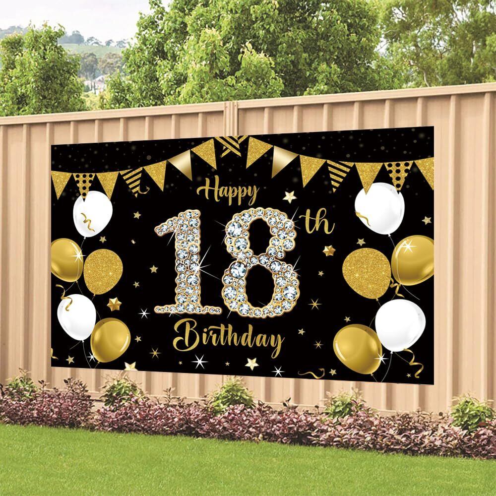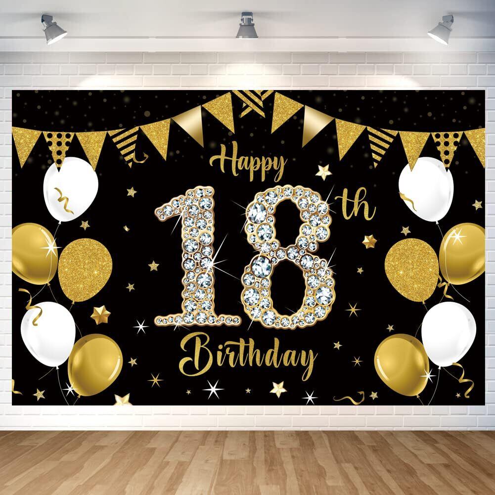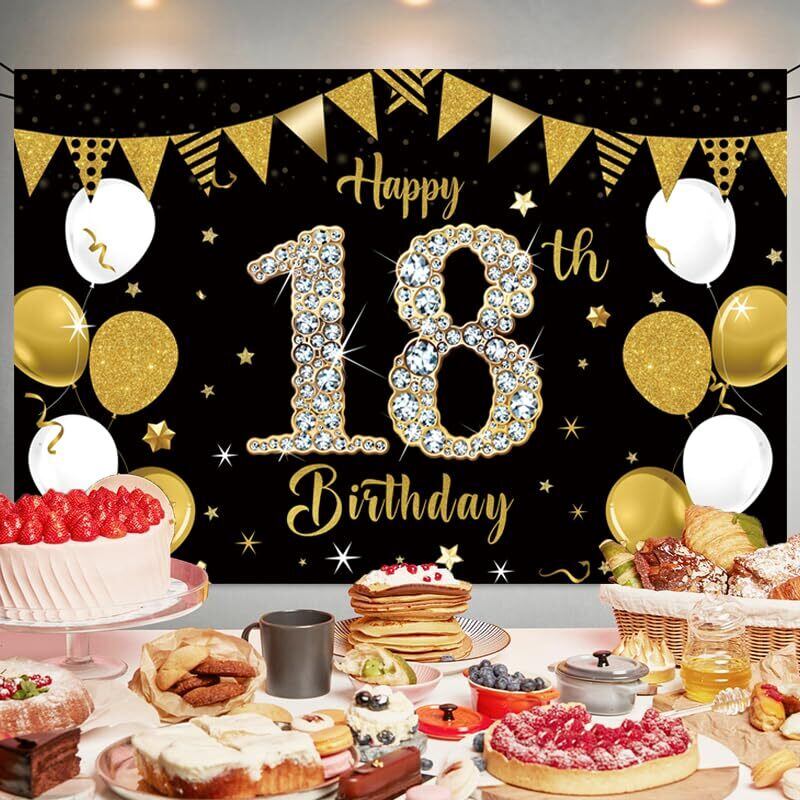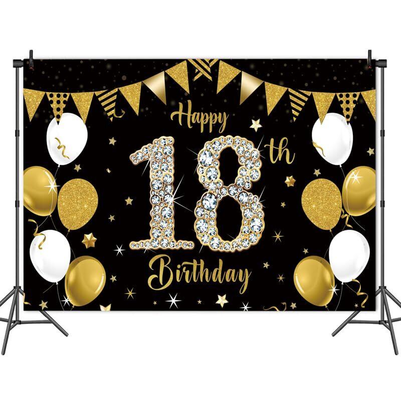 18歳 ブラックゴールド バースデー タペストリー 誕生日 飾り付け タペストリー おしゃれ 誕生日 壁掛け 写真背景 Happy Birthday パーティー フォトポスター おうちスタジオ 180x120cm