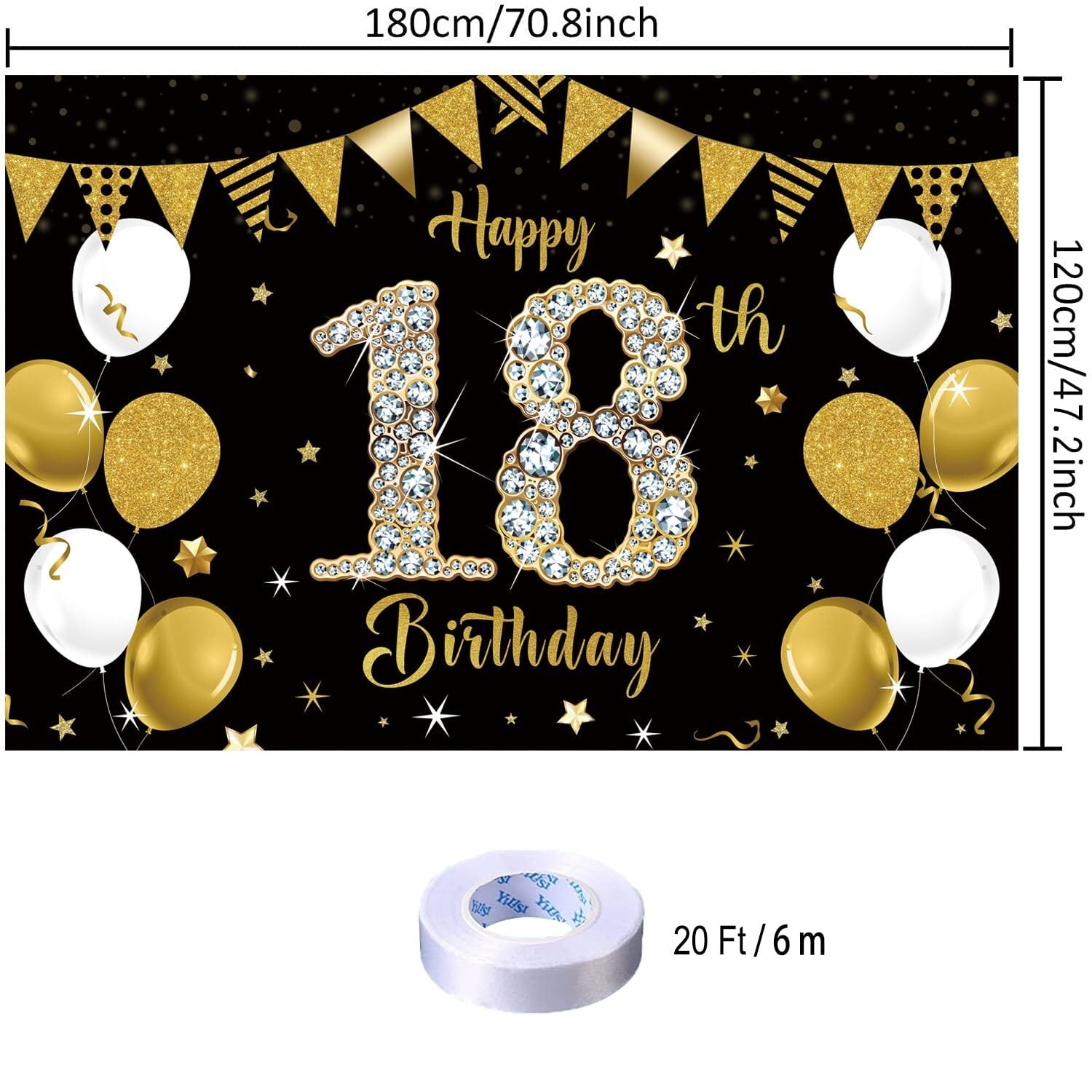 【大型サイズ】横180cm×縦120cmの大きめサイズで、おしゃれなブラックゴールドデザインでアピール度抜群だから、子供、家族、友人の誕生日パーティーで活躍してくれます。