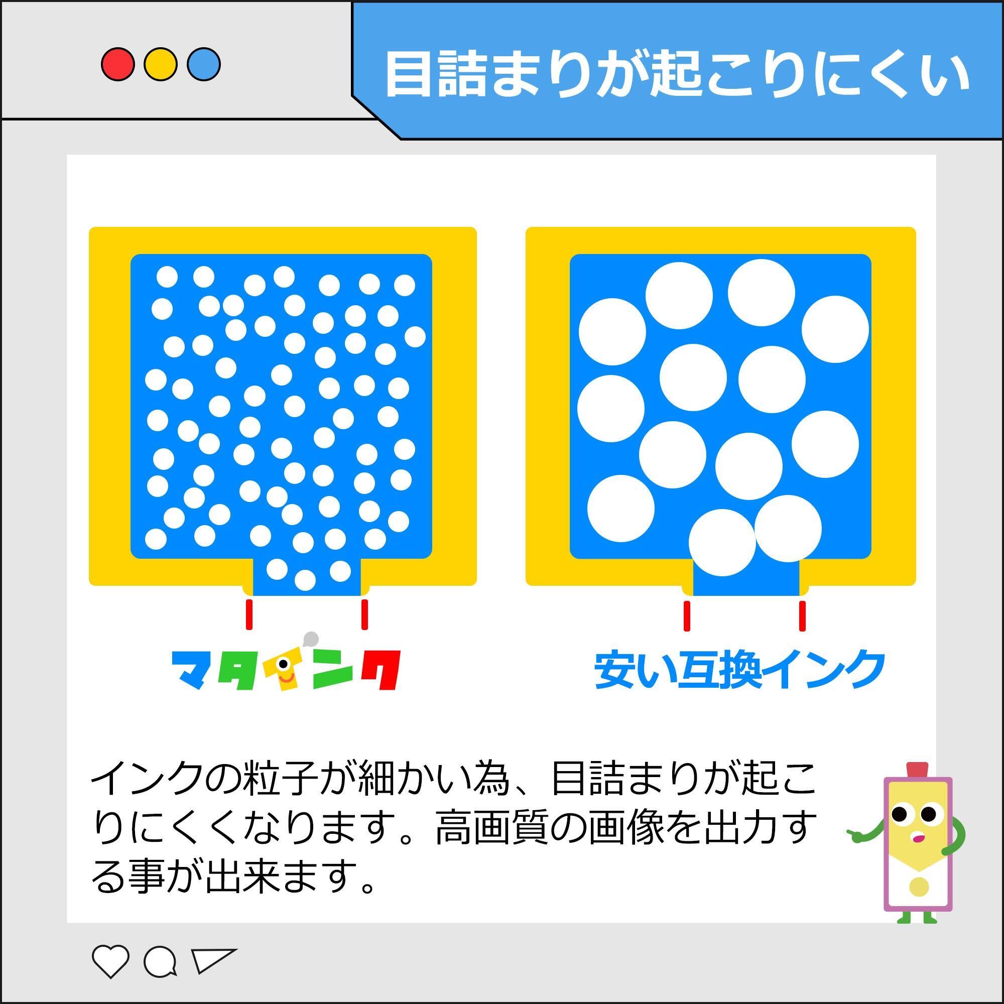 【注意事項】本製品は純正品ではありません。純正品との併用は問題ありませんが、別々の互換品メーカー同士の併用は避けてください。