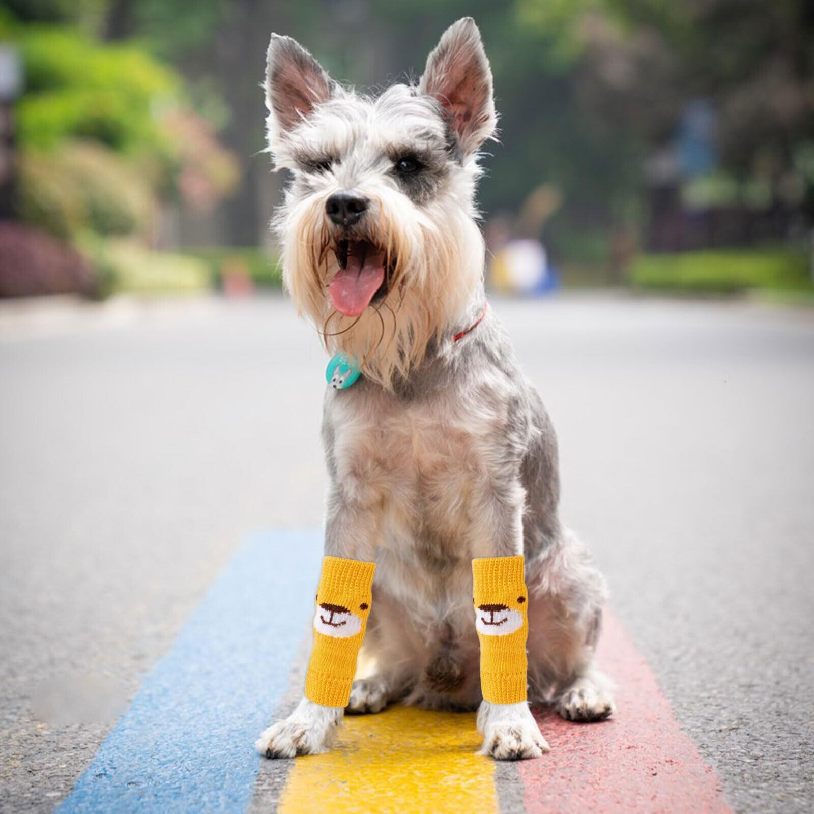 【パッケージ内容】黄色いクマさん柄のペット用レッグウォーマーを4枚お届けします。
