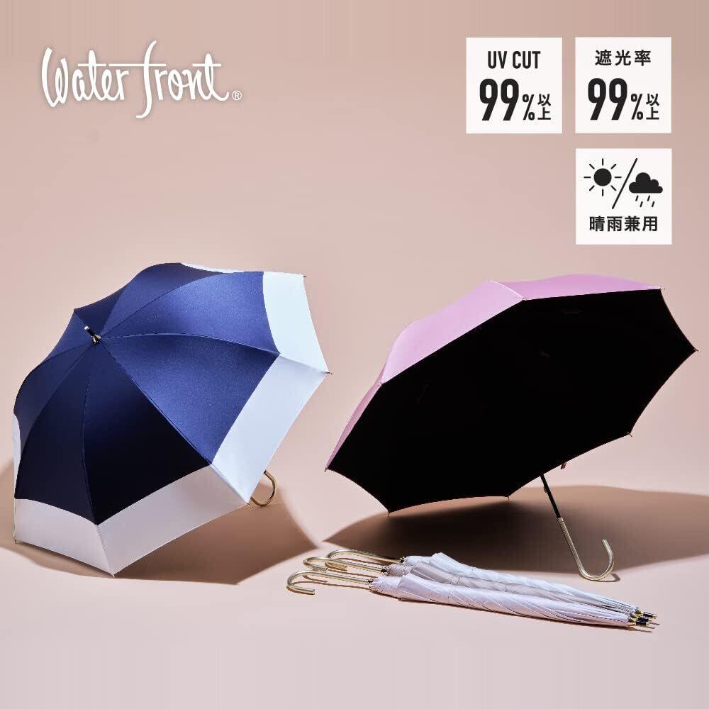 Waterfront 長傘 日傘兼用雨傘 スレンダーハンドルUVブロック 切り継ぎサンド×トープ 50cm おしゃれなゴールドハンドル UVカット 99.9% レディース S150-0822BG1-B1