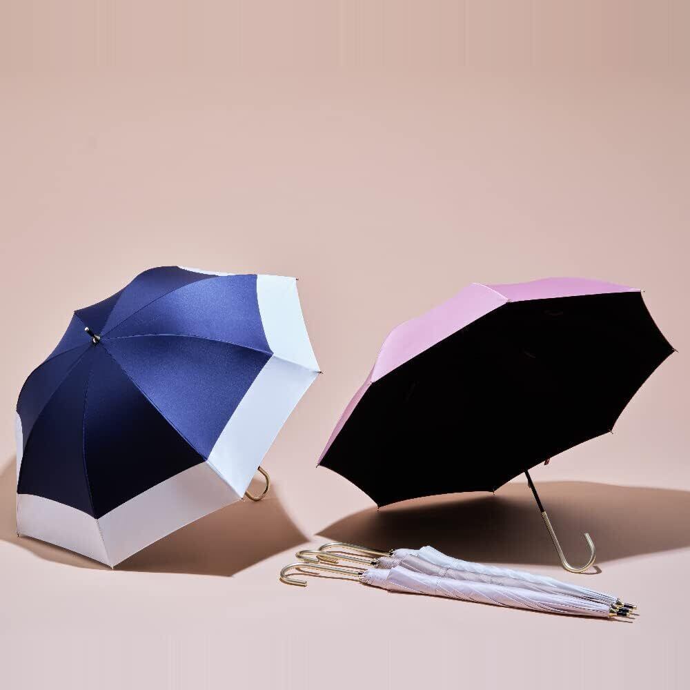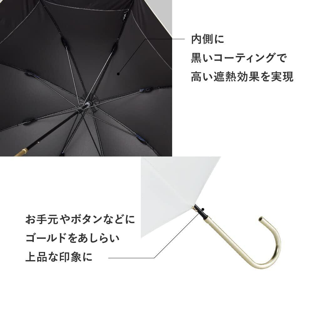 シンプルでシックな色合いとゴールド素材が上品な印象の日傘です。UVカット率99%以上、遮光率99%以上で日差しを遮ります。手開きタイプ。