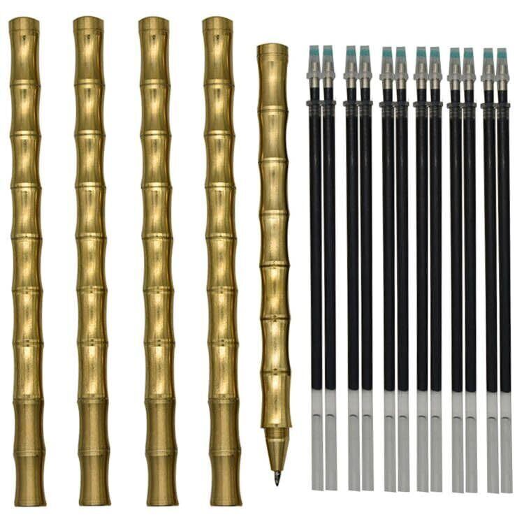 Maydahui おしゃれ 真鍮 竹節 金属 ボールペン 0.5mm 黑 5本 ジェルボールペン かきやすい 可愛い 文房具 オフィス パーティー用品 プレゼント