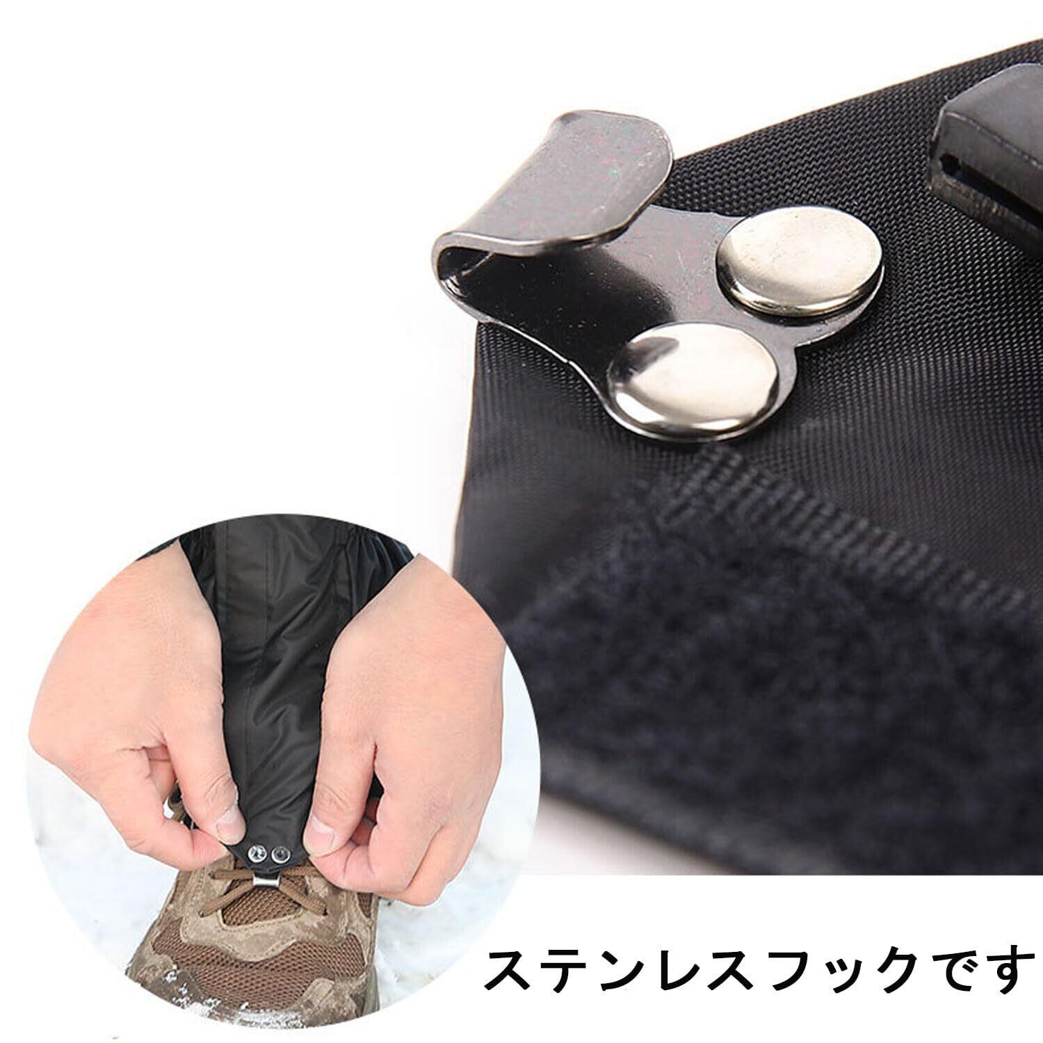 【簡単装着】足に装着するだけで簡単に装着できます。ファスナーとマジックテープでしっかりと固定し、雨、砂、雪などの侵入を防ぐことができます。