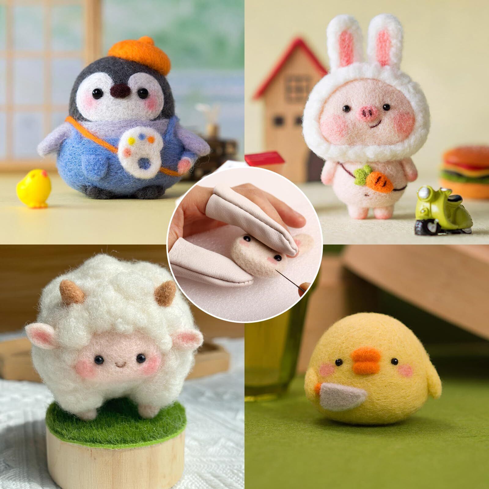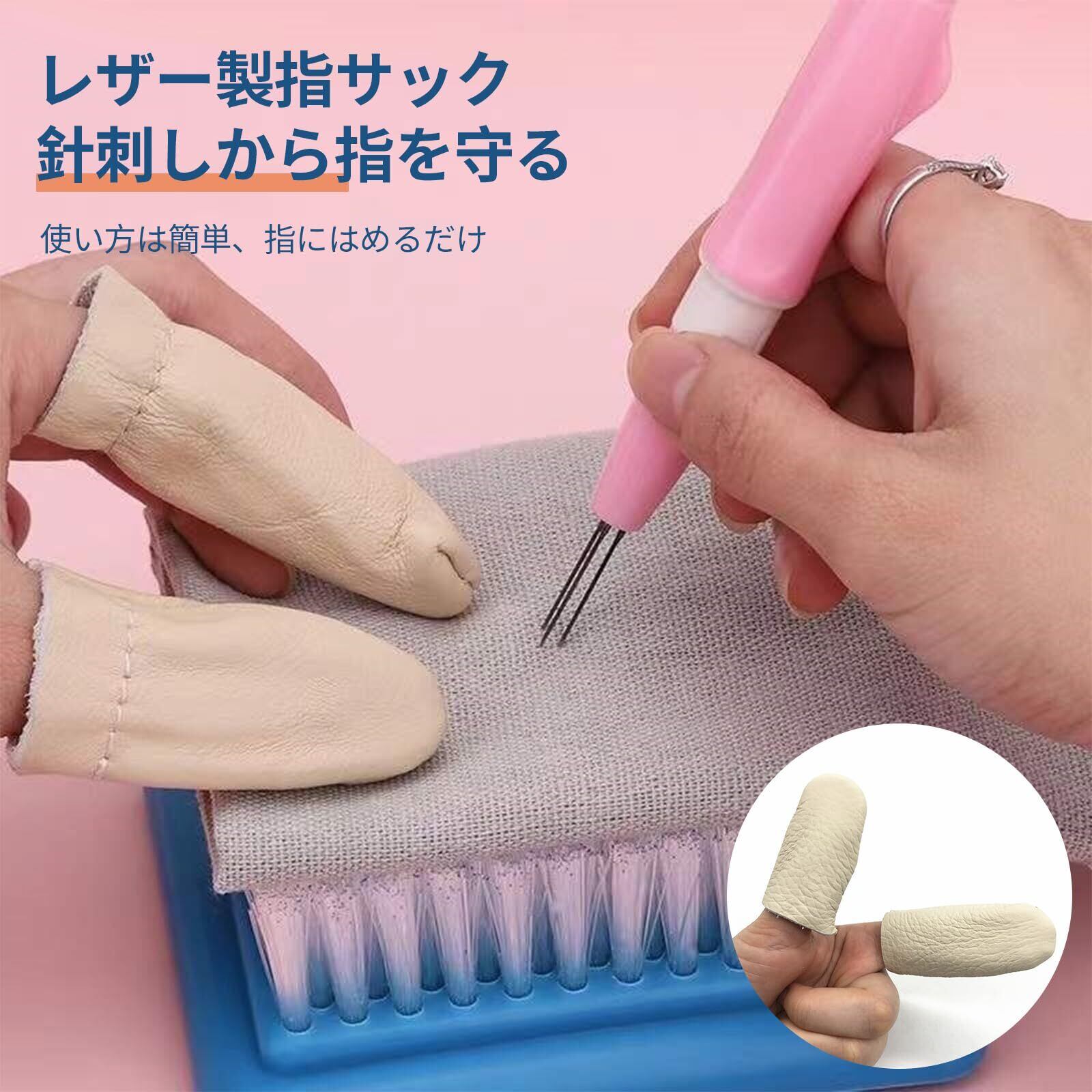 aninako 羊毛フェルト ニードル 3本針+レザー製指サック+2サイズのフェルト針付き 初心者入門キット フェルティングニードル 羊毛フェルト工具 刺繍フェルトニードル 手作り DIY用ツール (ピンク) | BASE SHOP