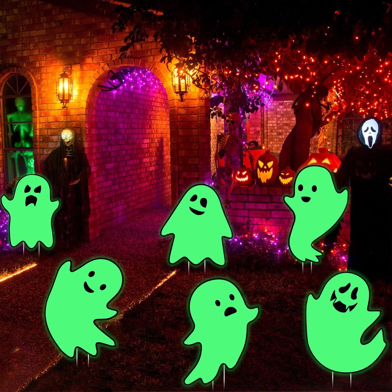 Neiang ハロウィン 飾り 屋外 6枚セット ヤードサイン 夜光効果 ハロウィン 装飾 庭 置物 かぼちゃ 芝生 ベランダ ハロウィン デコレーション ガーティー マーカー ハロウィングッズ 幽霊 | BASE SHOP