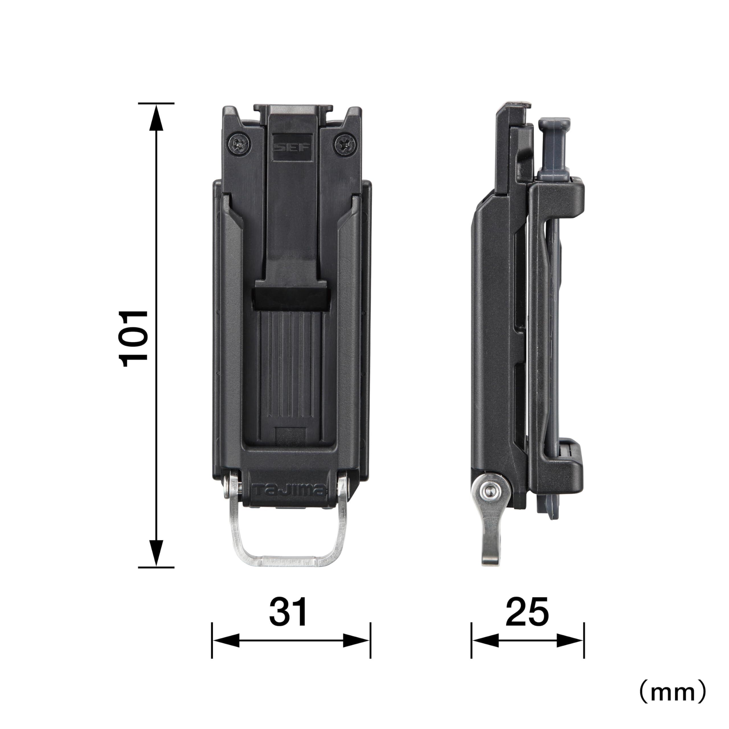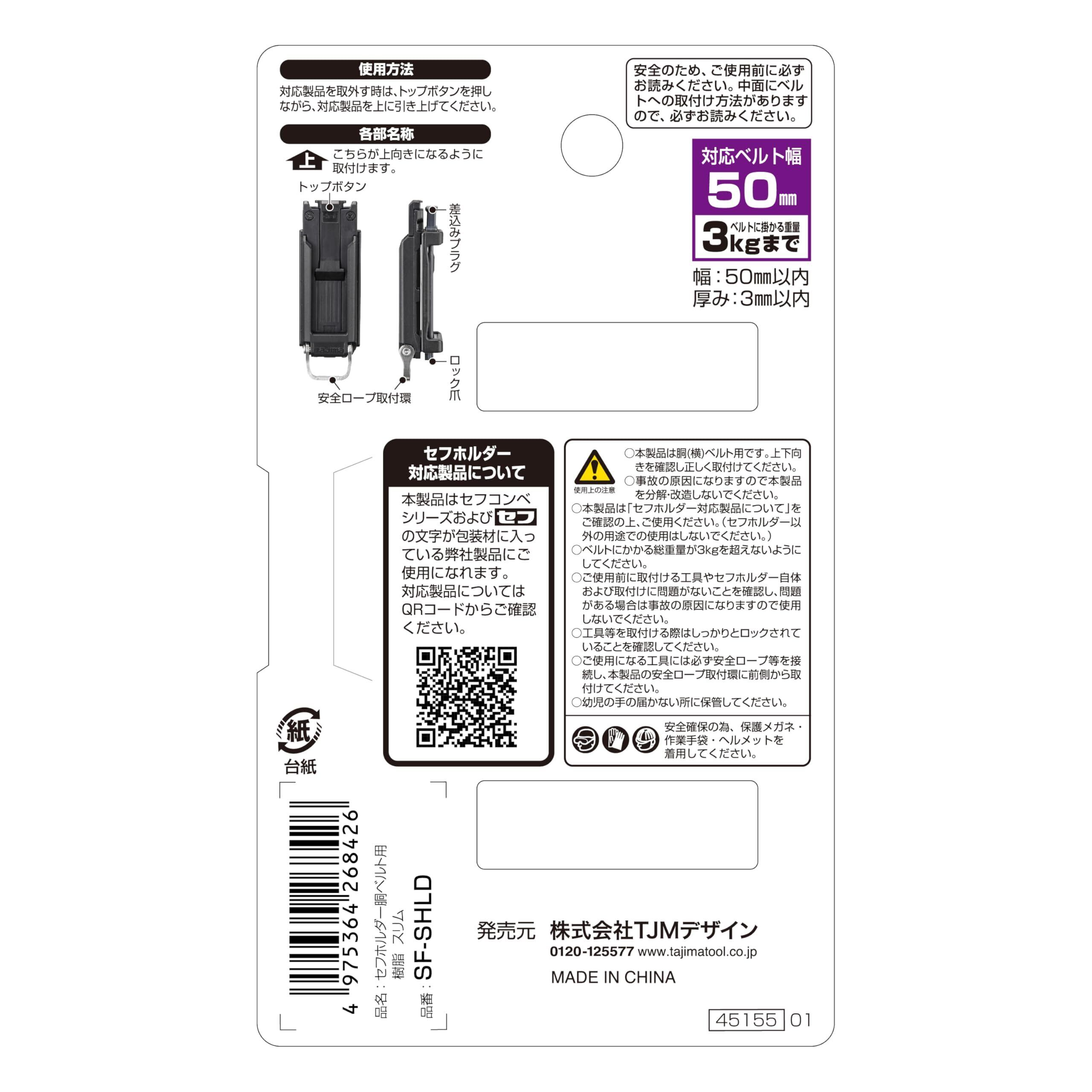 タジマ セフシステム セフホルダー胴ベルト用 樹脂 スリム SF-SHLD 取付場所に悩まないスリムタイプ 腰周りの左右にとらわれないトップボタン方式 セフホルダー胴ベルト用 樹脂 スライドストッパー付 安全ロープ取付環付 軽さ重視の樹脂タイプ