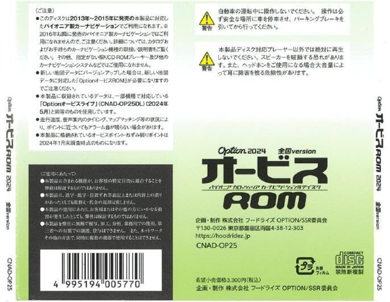 サイバーナビ 楽ナビ option「オービスROM」 2024年 全国Version CNAD-OP25