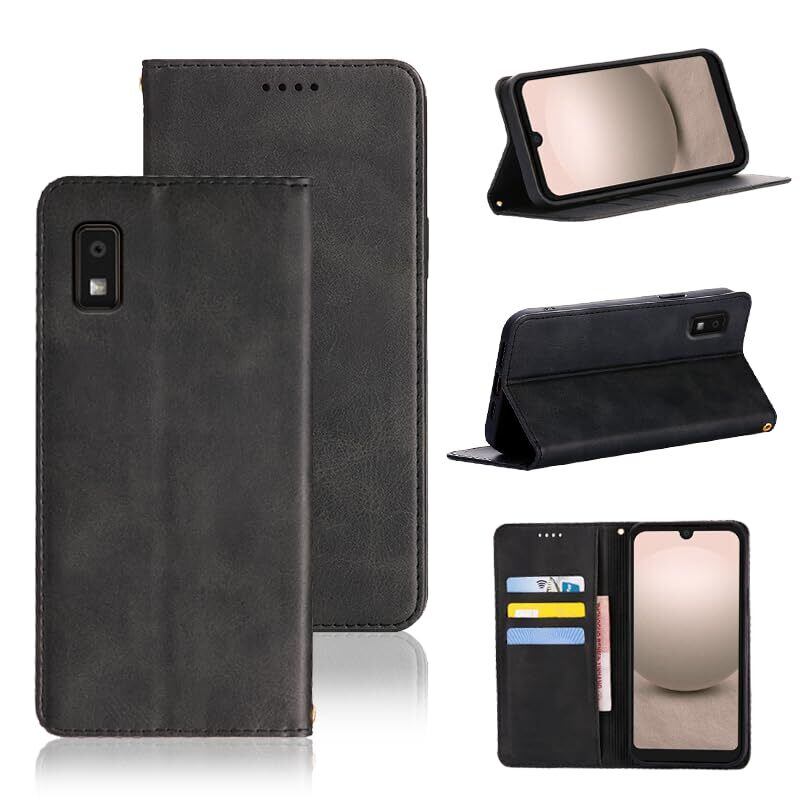 AQUOS wish3 ケース 手帳型 SH-53D A302SH ケース 手帳型 カバー PUレザー カード収納 財布型 耐衝撃 ケース マグネット スタンド機能付き 5色 (AQUOS wish3 SH-53D A302SH ケース 手帳型) (ブラック) | BASE SHOP