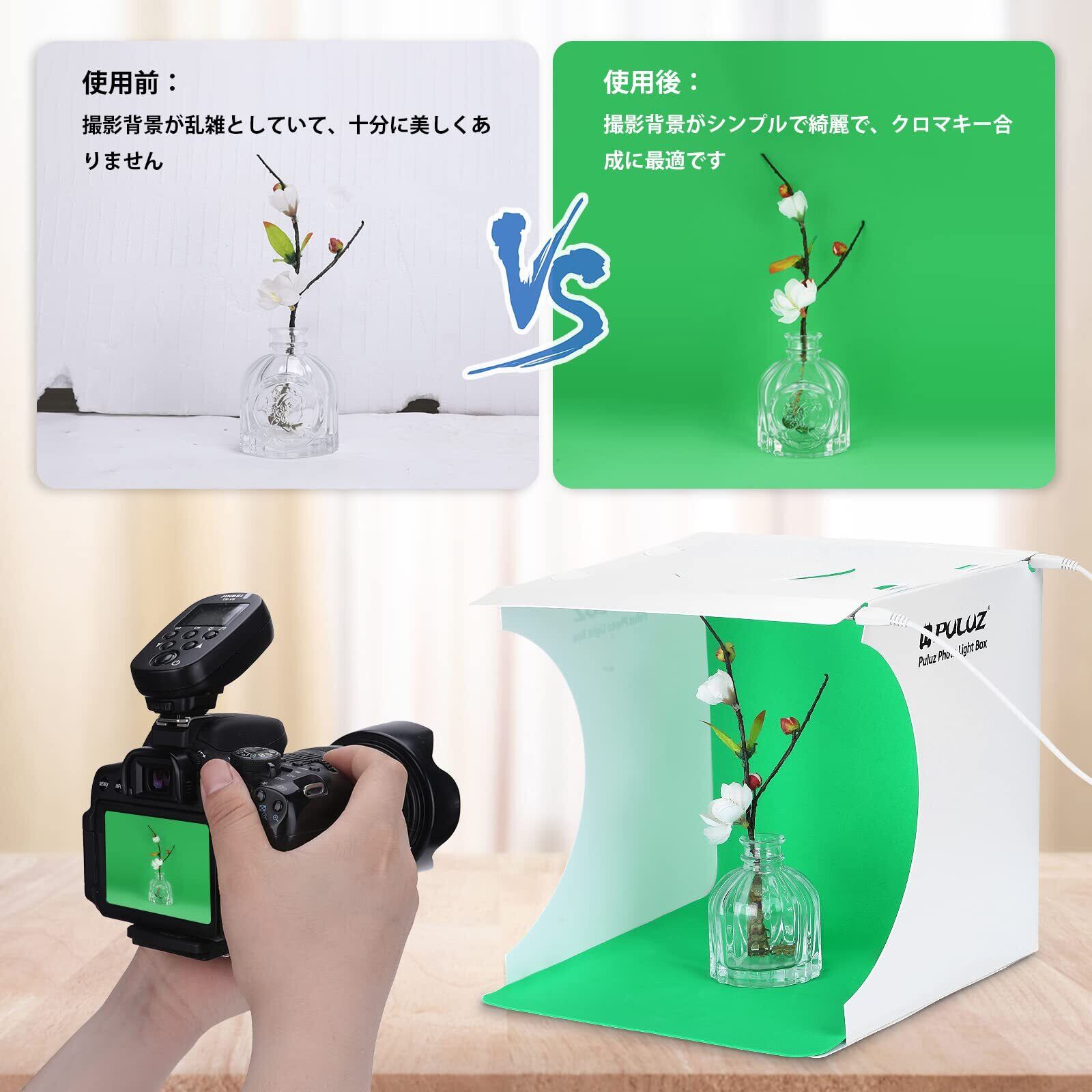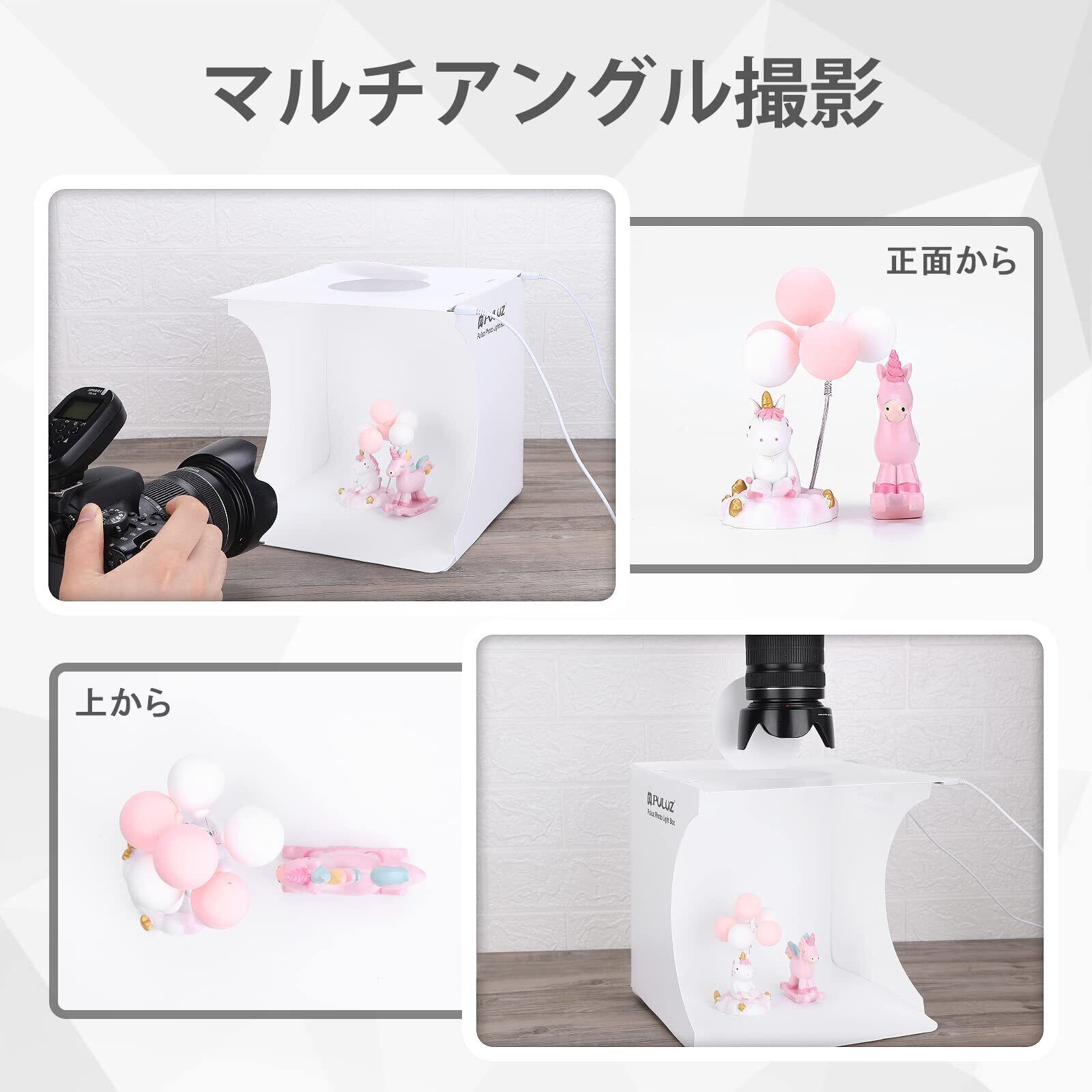 PULUZ 撮影ボックス 写真スタジオ「ミニ的に小物専用」20cm簡易 LEDライト2本付き 6色背景布 卓上撮影ブース 持ち運び便利 折りたたみ 撮影用 USB給電 組立簡単 物撮り 自宅 写真撮影用キット (20cm·LEDライト2本) | BASE SHOP
