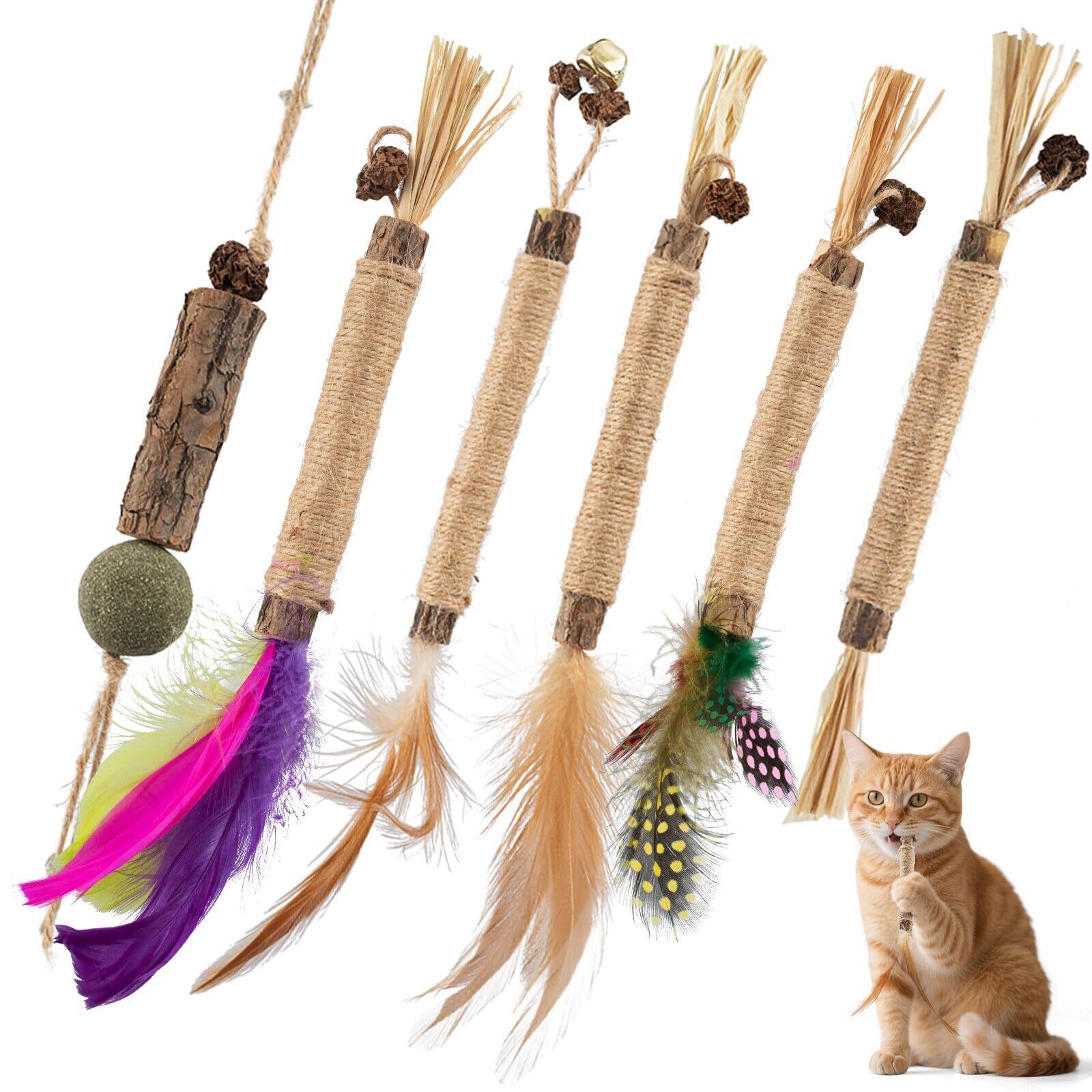 猫 噛むおもちゃ 歯磨き 歯ぎしり棒 またたび 天然木 麻縄 たたび 一人遊び デンタルケア オーラルケア 歯石ケア 口臭ケア 歯磨きおもちゃ ストレス解消 肥満解消(6本セット)