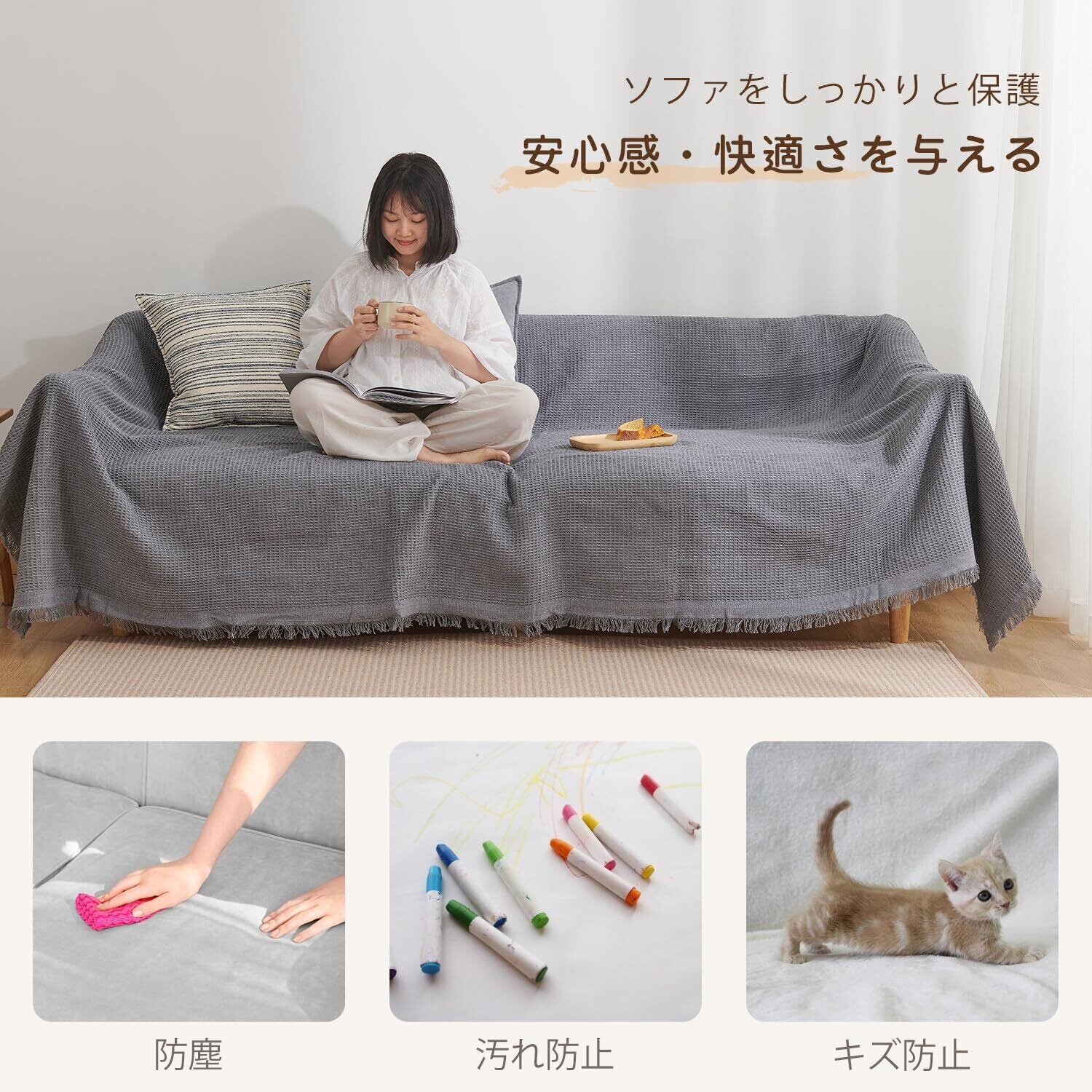 ・【幅広い使用範囲】かけるだけでソファー全体をカバーでき、防塵やキズ防止などの機能があり、ソファーをしかっりと保護できます。多機能で、ベッドカバー、テーブルクロス、冷房毛布、ひざ掛け、防塵カーペット、キャンプカーペット、旅行毛布などとして一年中活躍できます。