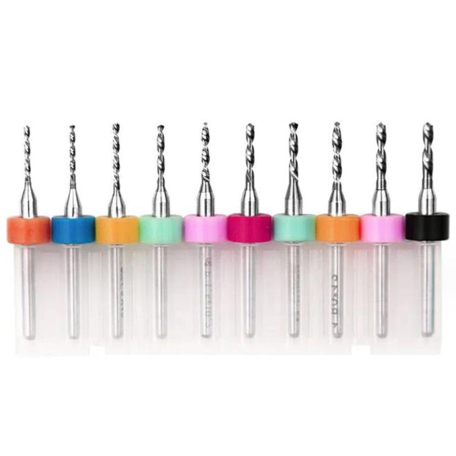 セット内容:極細ドリルビット10本セット(収納ボックス付き)、サイズ:1.1-2.0mm(1.1、1.2、1.3、1.4、1.5、1.6、1.7、1.8、1.9、2.0mm)、カラー:カラフル(色ランダム)。