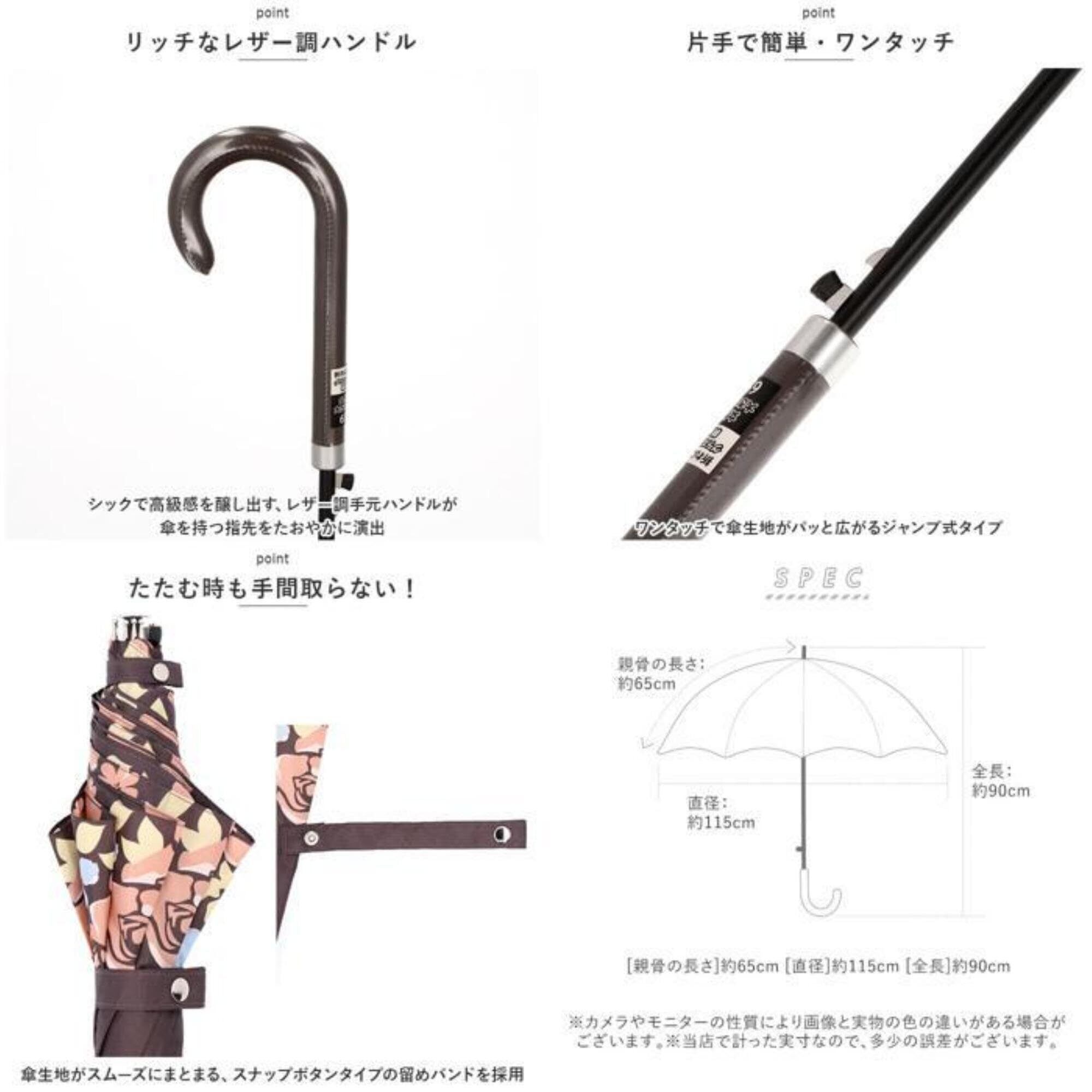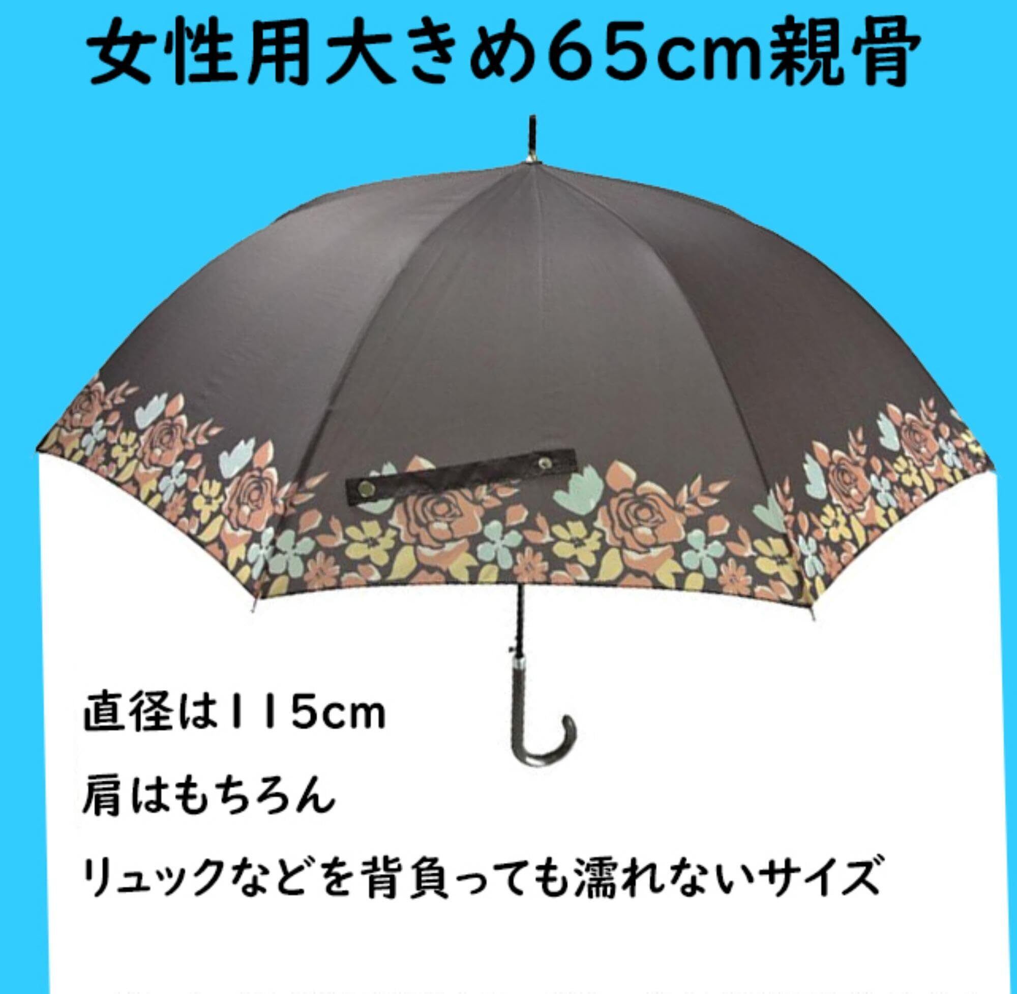レディースでは珍しい65cm大判の大きい長傘。上質のレザーハンドル仕上げで大きいだけではなくおしゃれです。