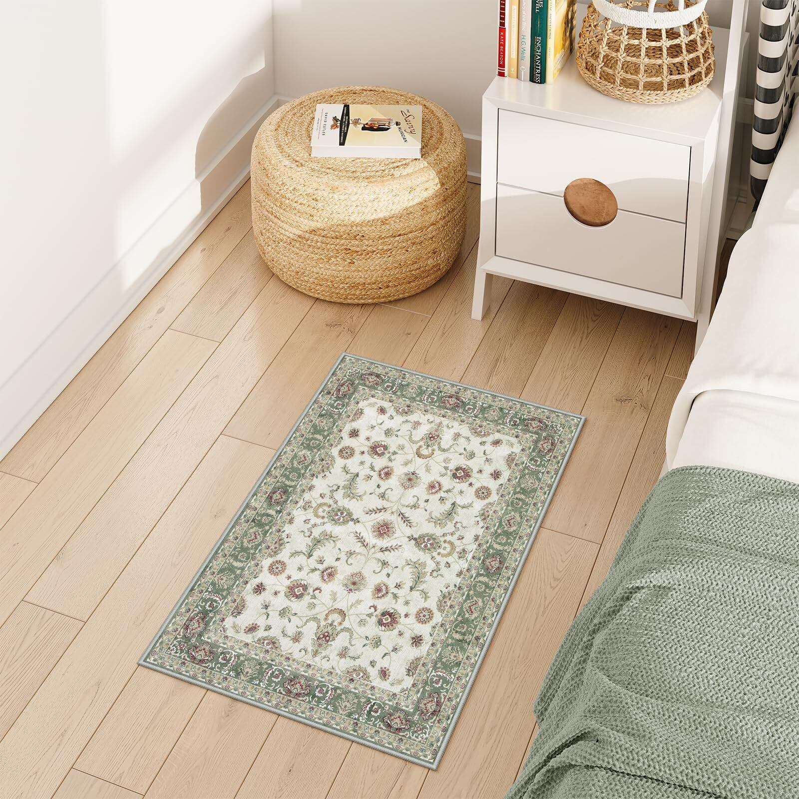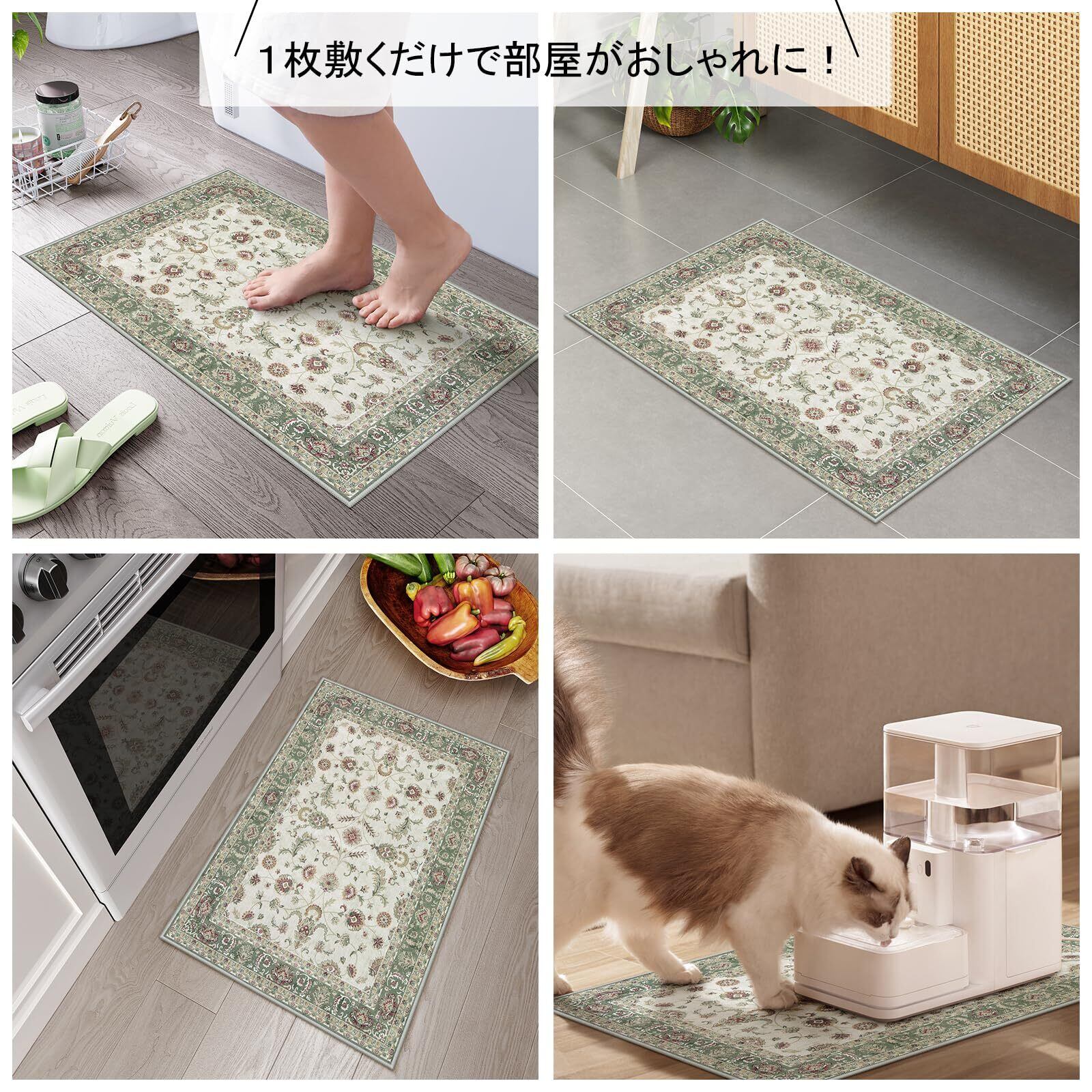 HAOCOO 玄関マット 室内 ペルシャ風 50х80cm 小さい ラグ おしゃれ 洗える 長方形 耐磨耗性 滑り止め 防音 ラグマット 屋外 泥落とし シェニール オールシーズン適用 抗菌防臭 軽量 花柄 グリーン | BASE SHOP