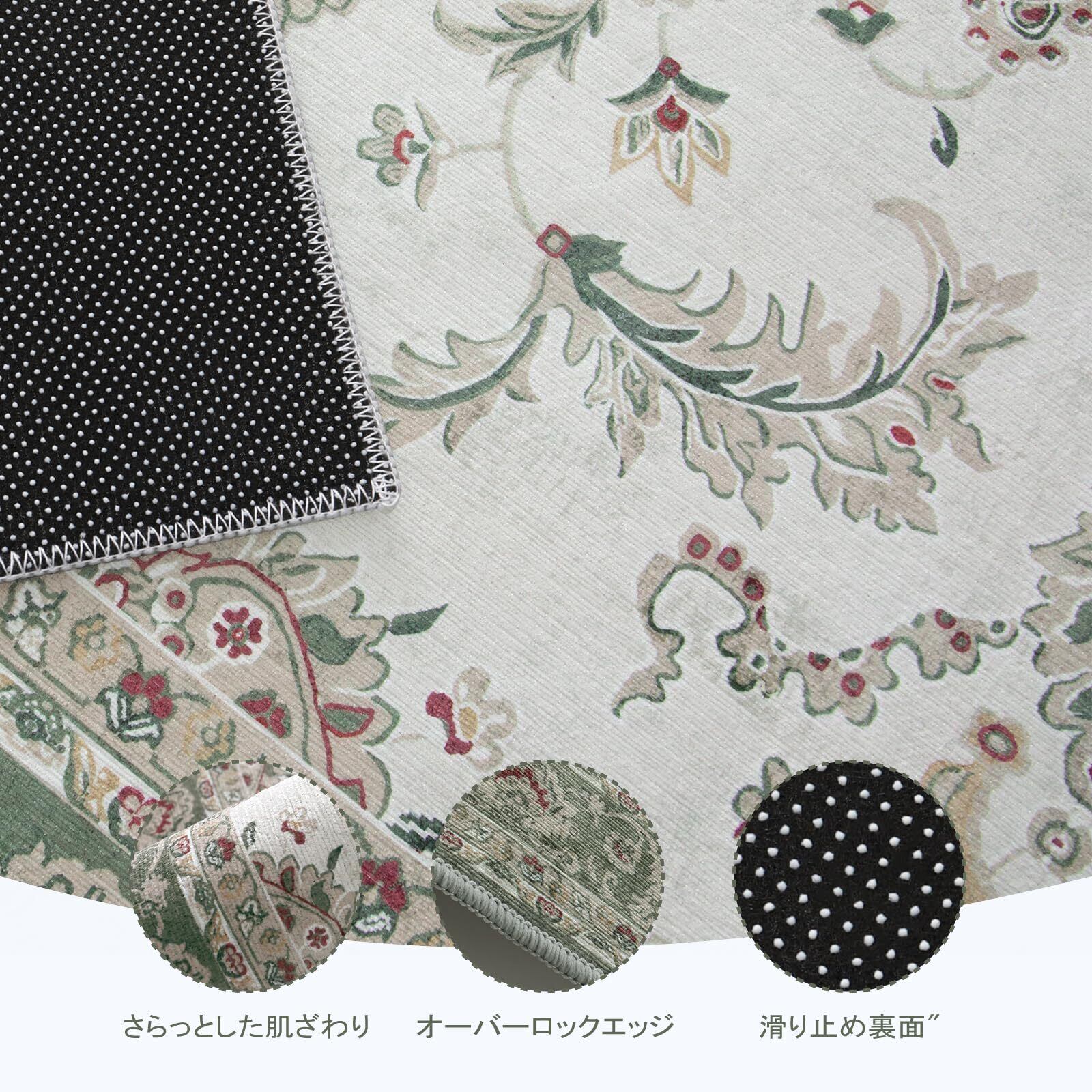 【ペルシャ風デザイン】先端の印刷技術より駆使され、平織り生地に繊細な画像がプリントされ、絨毯の上品さ を演出します。また、伝統的なペルシャ風柄を現代にアレンジし、シンプルなお部屋のアクセントとしてもおすす めします。端縁にはオーバーロックの加工を施し、遊び毛が出たり、形を崩れたりしにくく、優れた耐久性を実現 します。更に、角は細いパイピングで、軽やかな印象に仕上げています