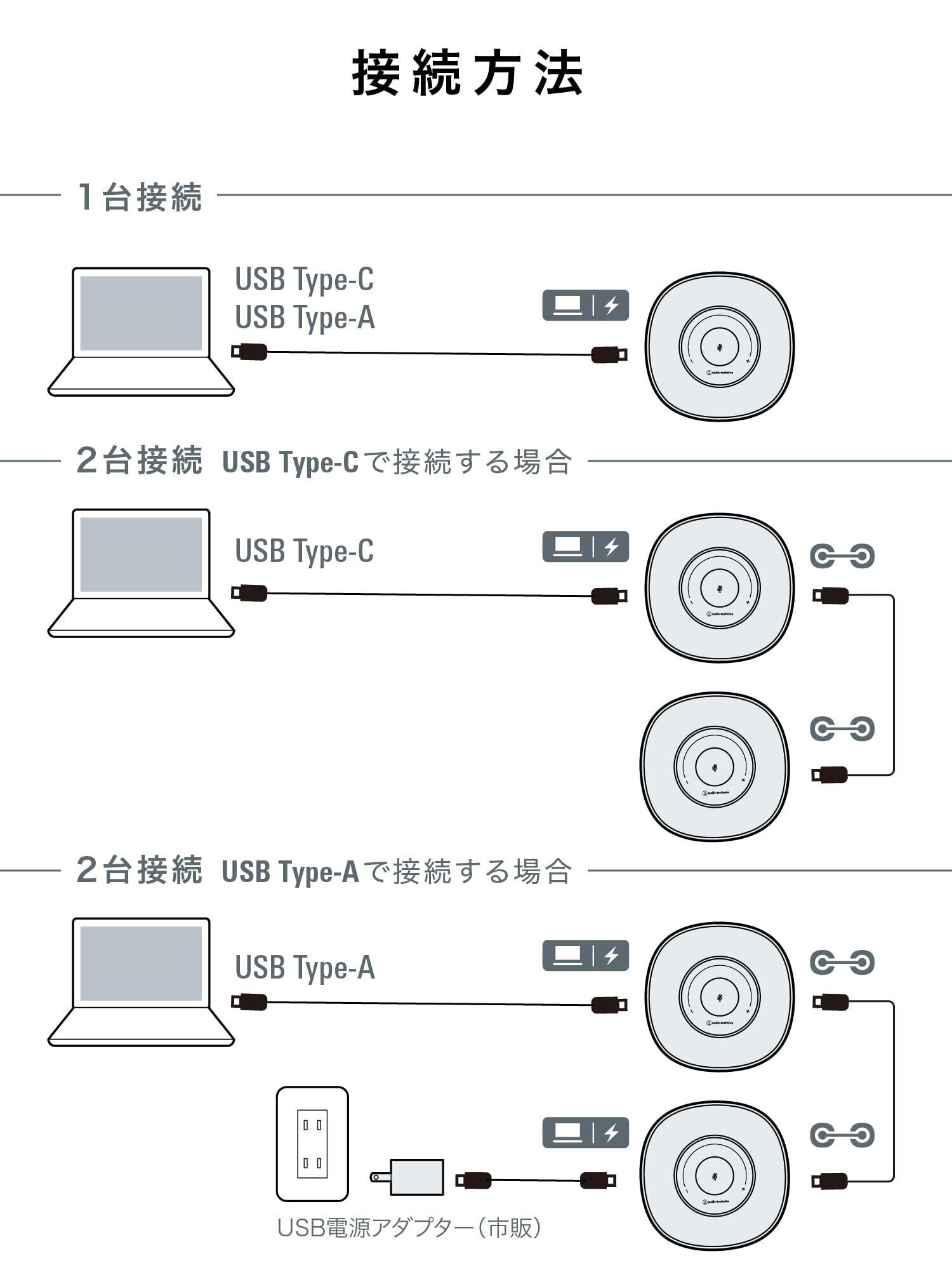 オーディオテクニカ AT-CSP7 (E) スピーカーフォン 会議用マイクスピーカー ZOOM認証 2台連結で最大12人対応 Type-C Type-A 対応 ノイズリダクション エコーキャンセラー オンライン会議 テレワーク 在宅 会議用システム | BASE SHOP