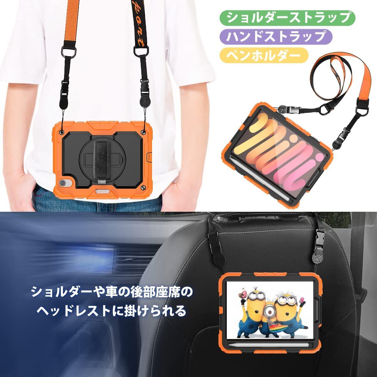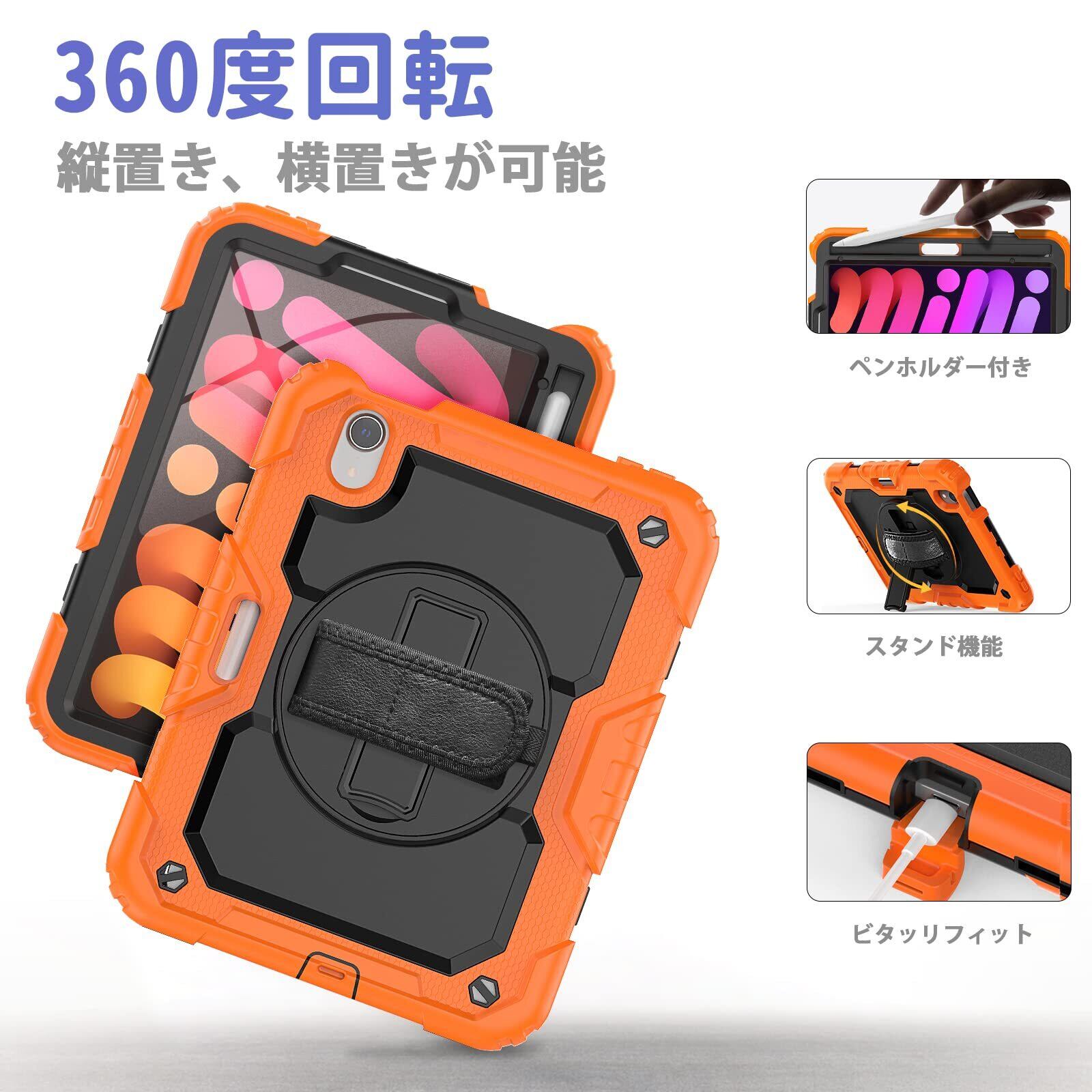 Timecity iPad Mini7 ケース 8.3インチ (2024新モデル) スポーツを愛する ユーザーの為に 耐衝撃 iPad Mini 第7/6世代 ケース 三層保護 頑丈 保護フィルム付き 360度回転スタンド ペン収納 肩掛け ハンド&ショルダーストラップ付き 耐久性 傷防止 子供 工事現場 多機能 カバー 縦置き 充電対応 iPad Mini7/ Mini6 ケース (オレンジ) | BASE SHOP