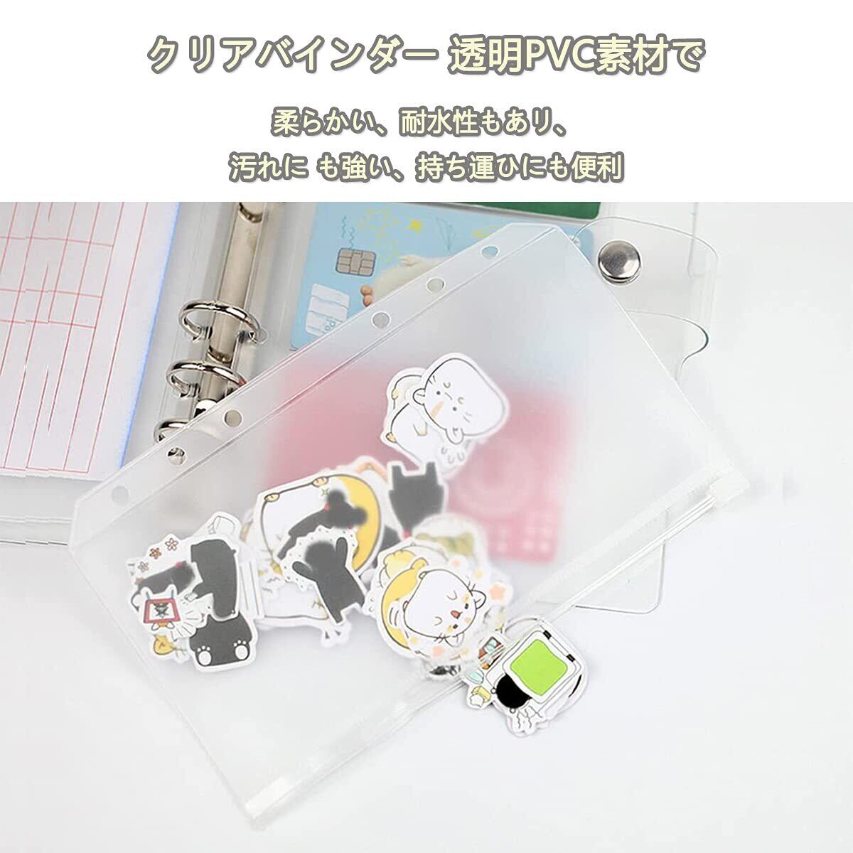 システム手帳 A6 PVC バインダー ミニ6穴手帳 ポケットサイズ PVCクリア素材 柔らかい ボダン付き A6クリアポケット