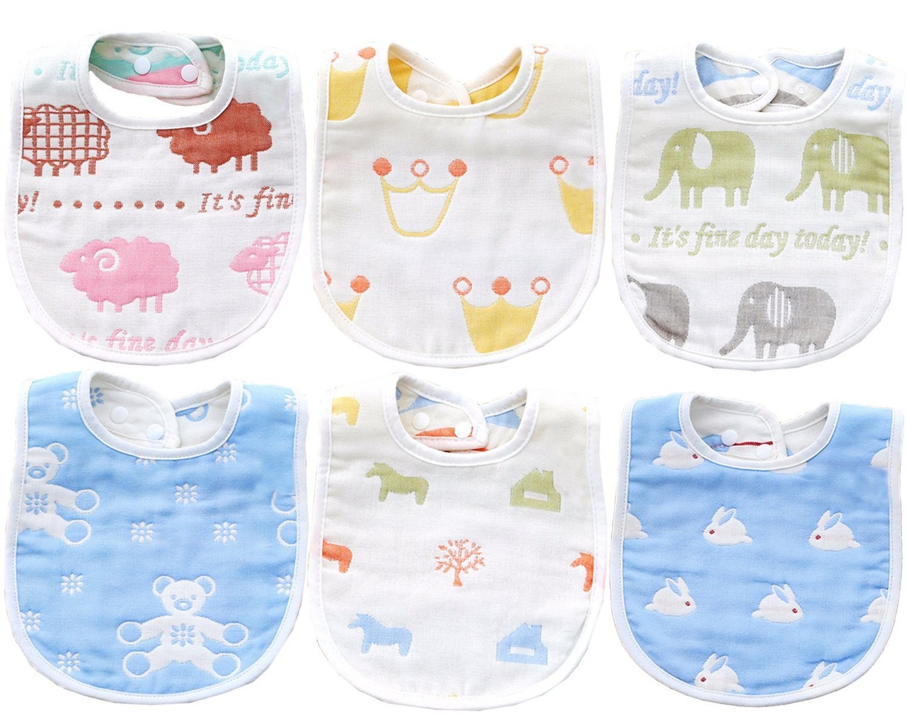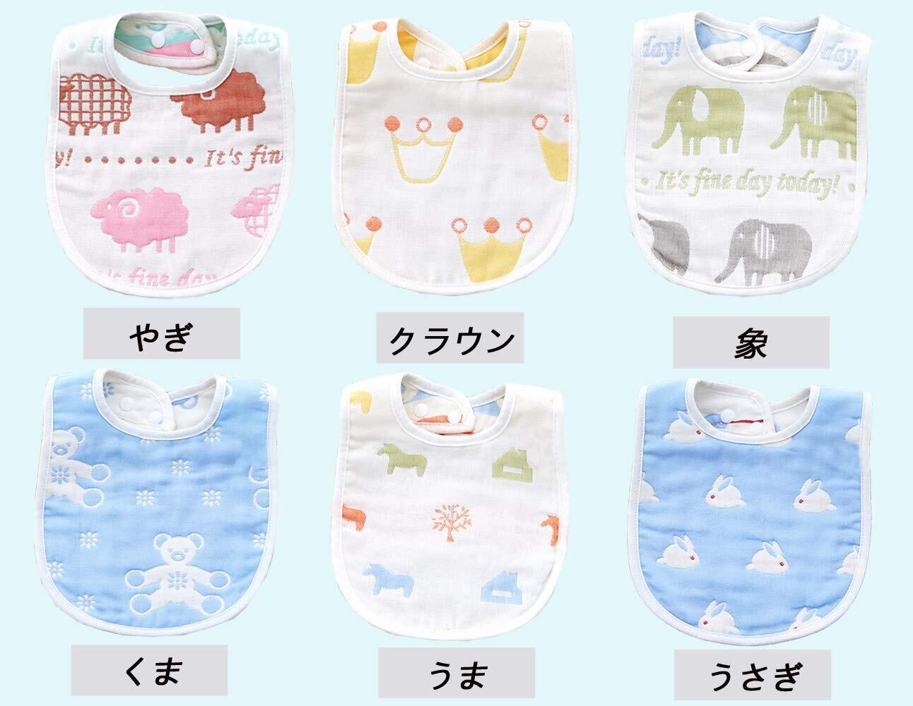 [TMVOK] スタイ よだれかけ 出産祝い 6重ガーゼ 6枚セット すたい お 食事 エプロン ベビー ビブ 新生児 大判 22*32cm 調整可能 かわいい動物 男の子 女の子 赤ちゃん 100%綿製 | BASE SHOP
