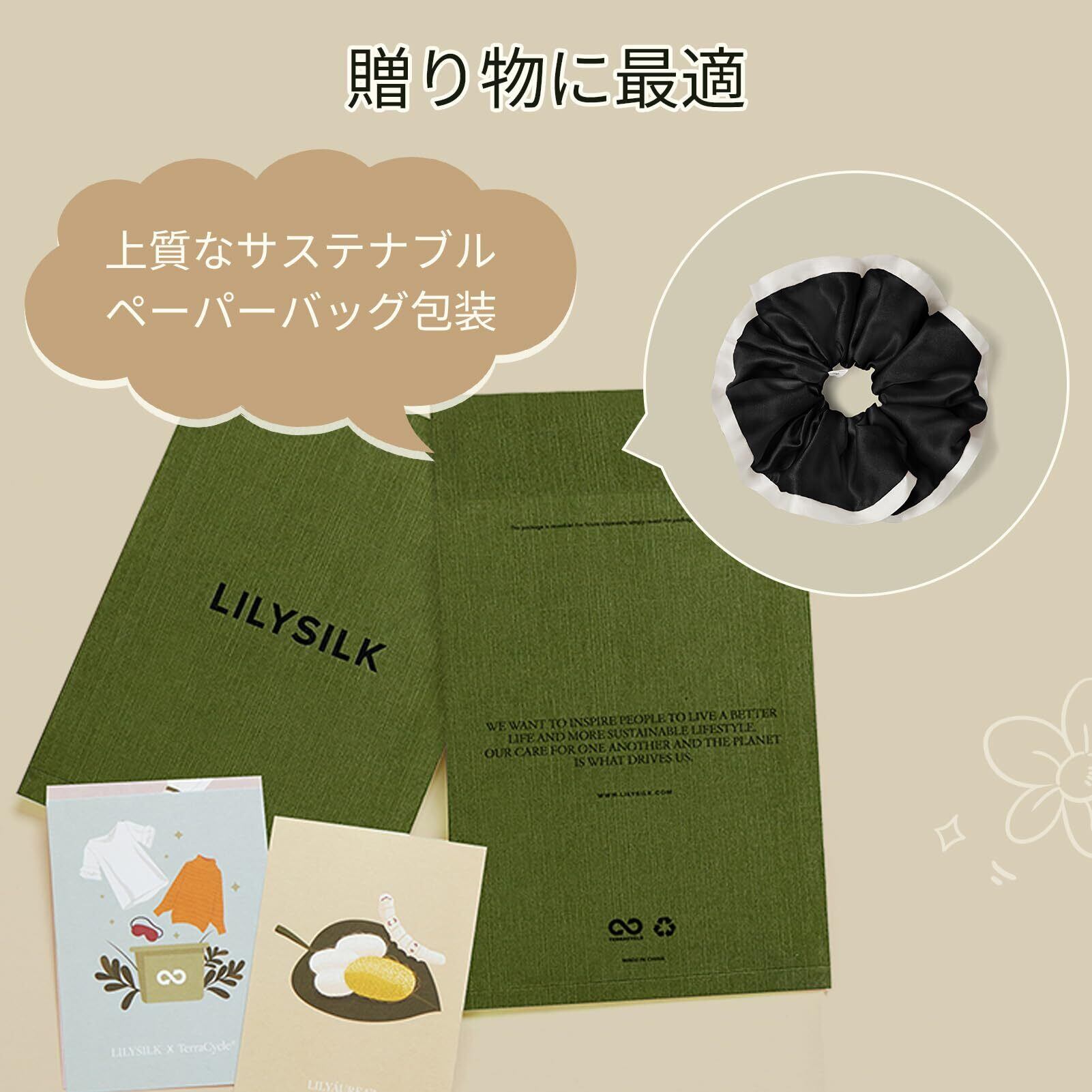 LILYSILK シュシュ シルク ヘアゴム おしゃれ 大きめ かわいい 天然シルク100% レディース 花みたい 女性 大人 お団子 髪ゴム ヘアアクセサリー 髪飾り 髪に優しい コントラストカラー プレゼント