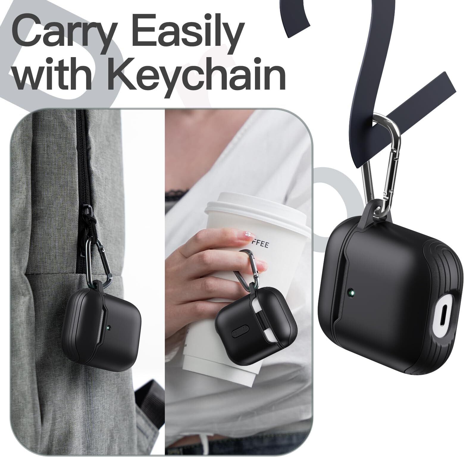 JETech AirPodsケース(第1/2世代用) PC/TPU製 キーチェーン付き保護カバー (ブラック)