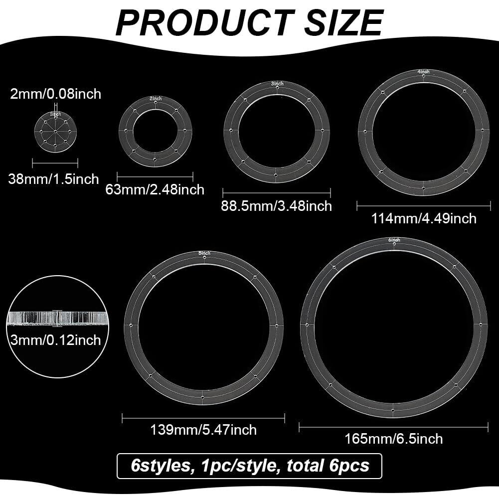 パッケージ内容: 縫製ニーズに合わせて、6サイズの円形アクリルテンプレートを含まれます。