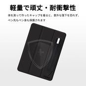 【伸縮性がありタッチペンをしっかりホールド】ポケット部分はは伸縮性のあるゴム素材になっており、一度しまうとタッチペンをしっかり固定してくれ持ち運んだとしても落ちる心配がなく安心です。