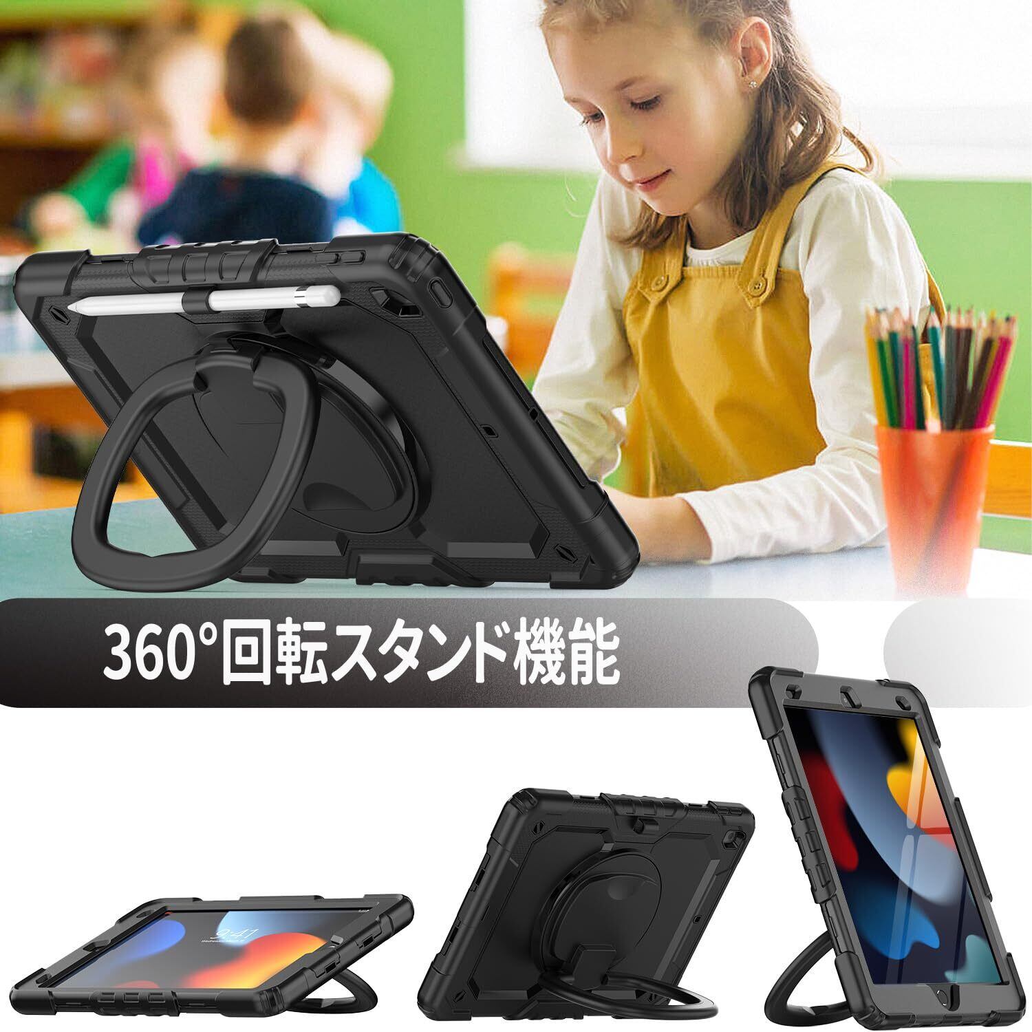 Timecity iPad 第9/ 8/ 7世代 ケース 耐衝撃 リングハンドル 保護フィルム 360回転スタンド ショルダーストラップ ペン収納付き 頑丈 子ども 傷防止 仕事用 現場 工事 多機能 iPad 10.2インチ ケース 2021/2020/2019 (ブラック)(適格請求書発行可能)