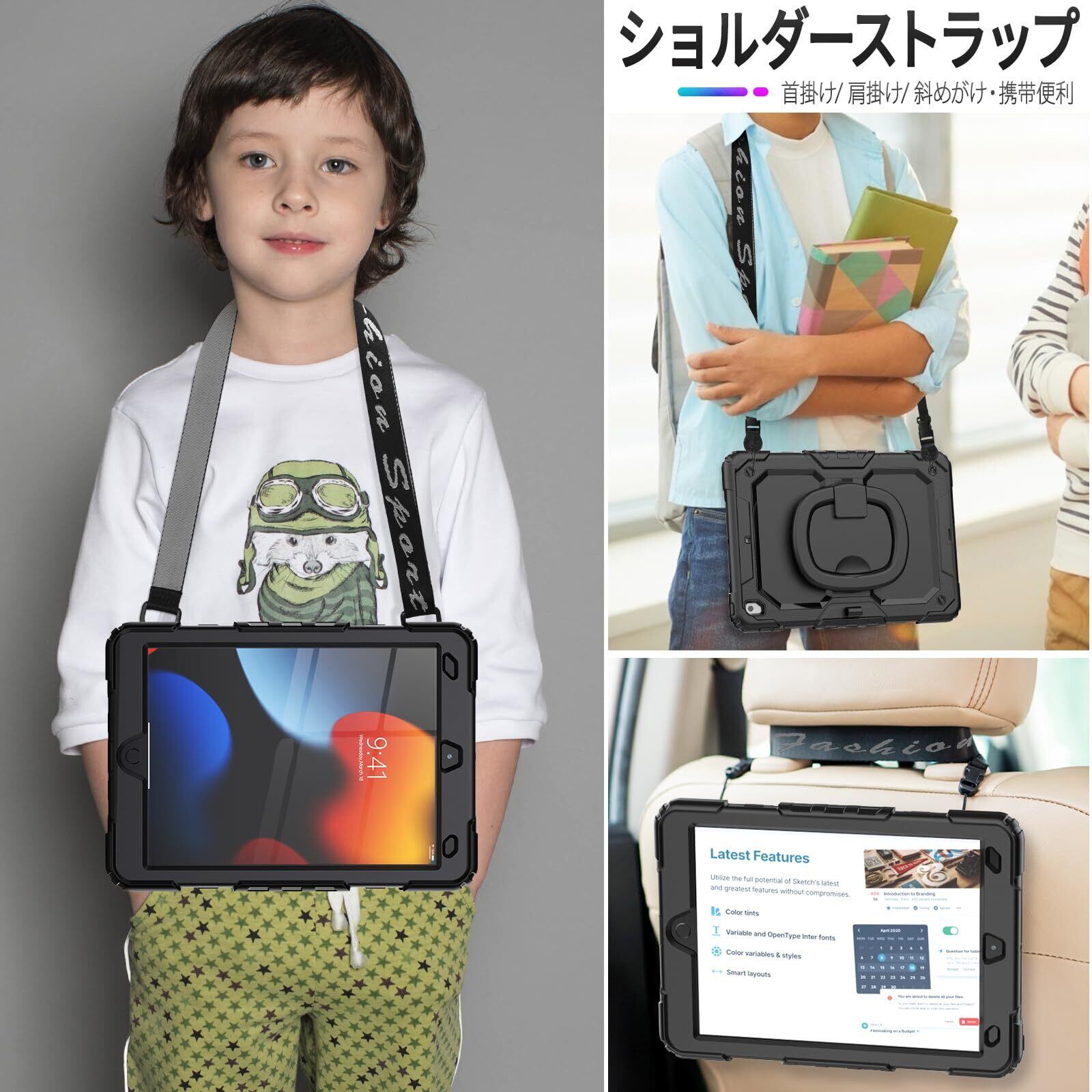 Timecity iPad 第9/ 8/ 7世代 ケース 耐衝撃 リングハンドル 保護フィルム 360回転スタンド ショルダーストラップ ペン収納付き 頑丈 子ども 傷防止 仕事用 現場 工事 多機能 iPad 10.2インチ ケース 2021/2020/2019 (ブラック)(適格請求書発行可能) | BASE SHOP