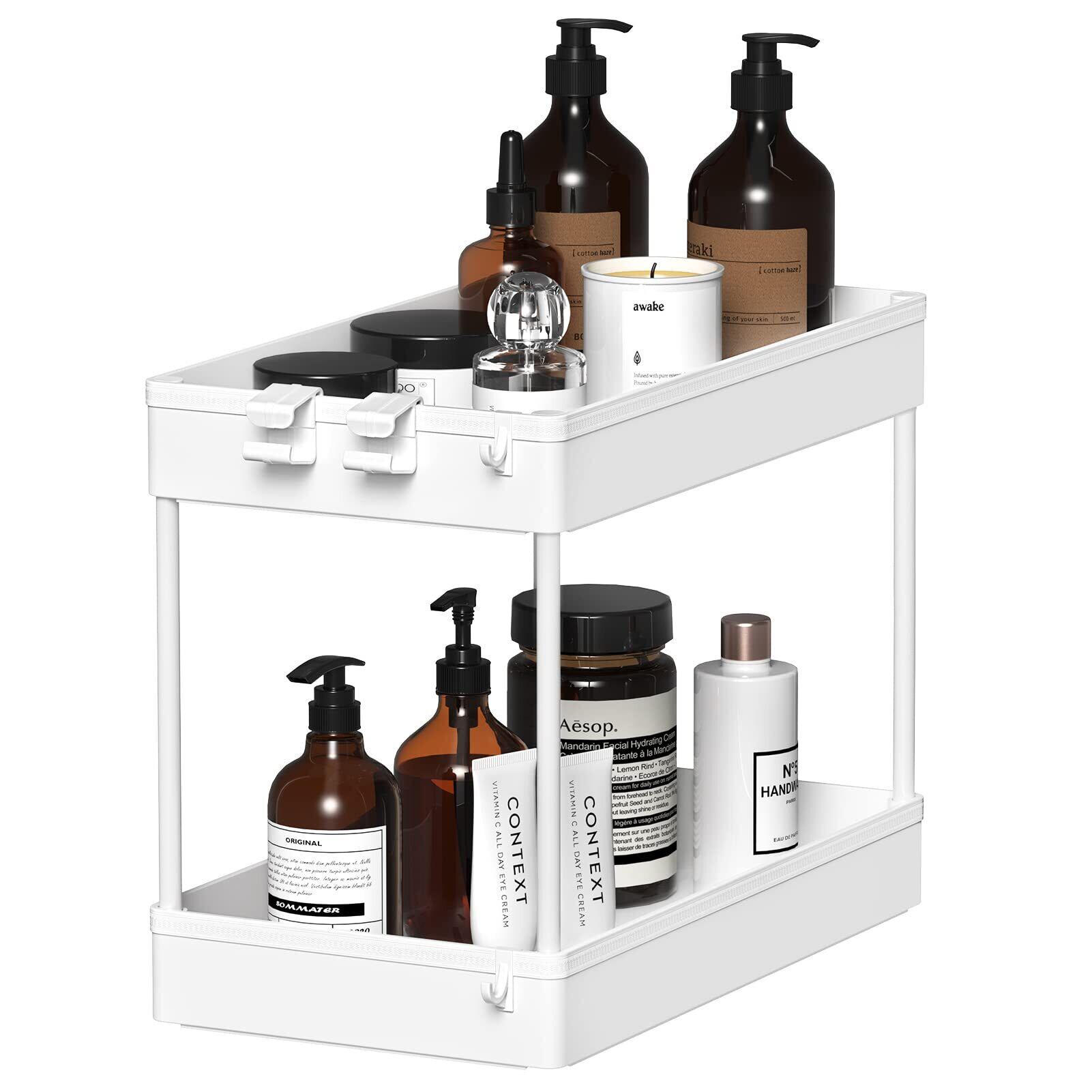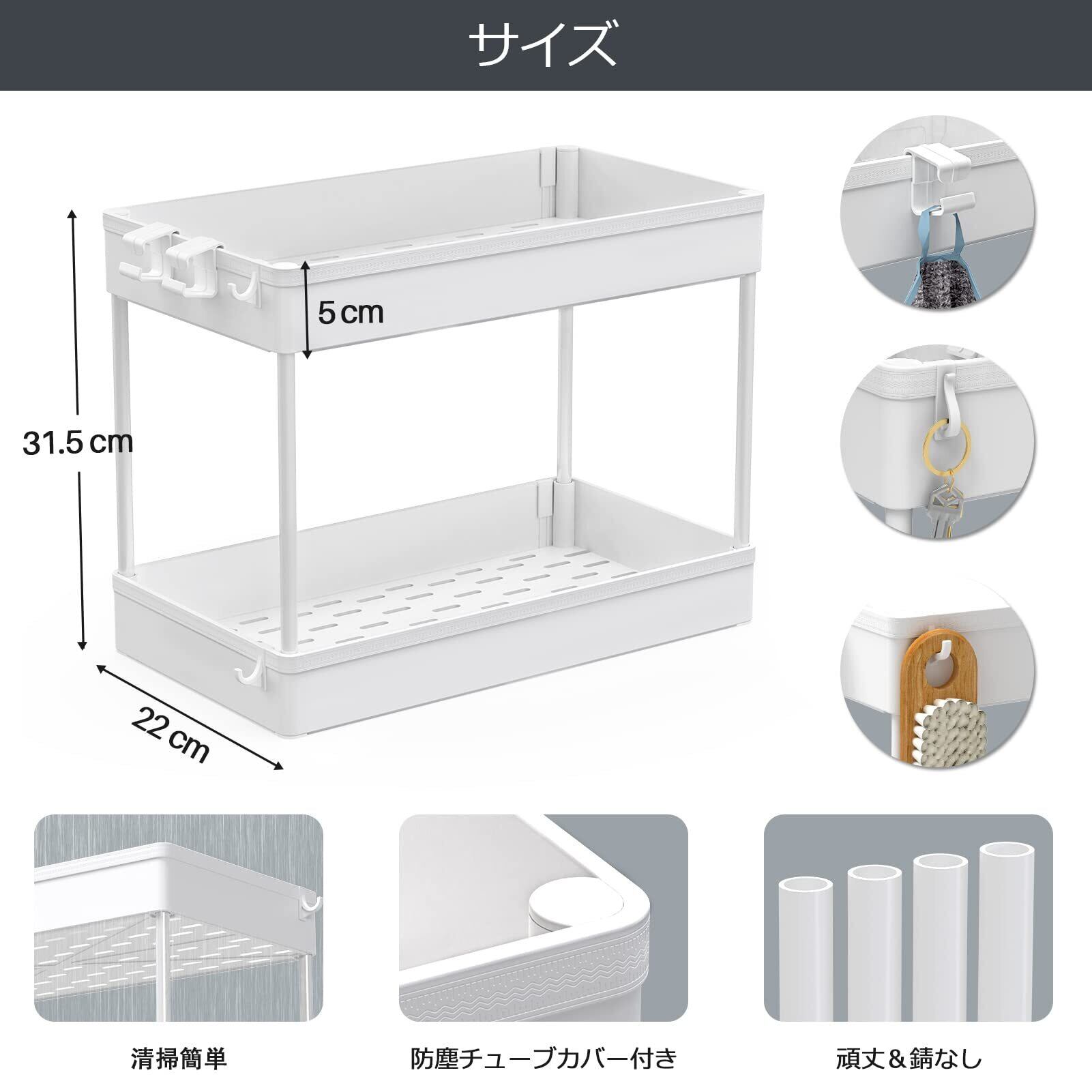 SPACEKEEPER シンク下収納 キッチン収納 2個セット 2段 収納ラック 調味料収納ラック 台所収納 隙間収納 大容量 幅22cm 省スペース 小物整理 防汚 組立簡単 フック付き ホワイト | BASE SHOP