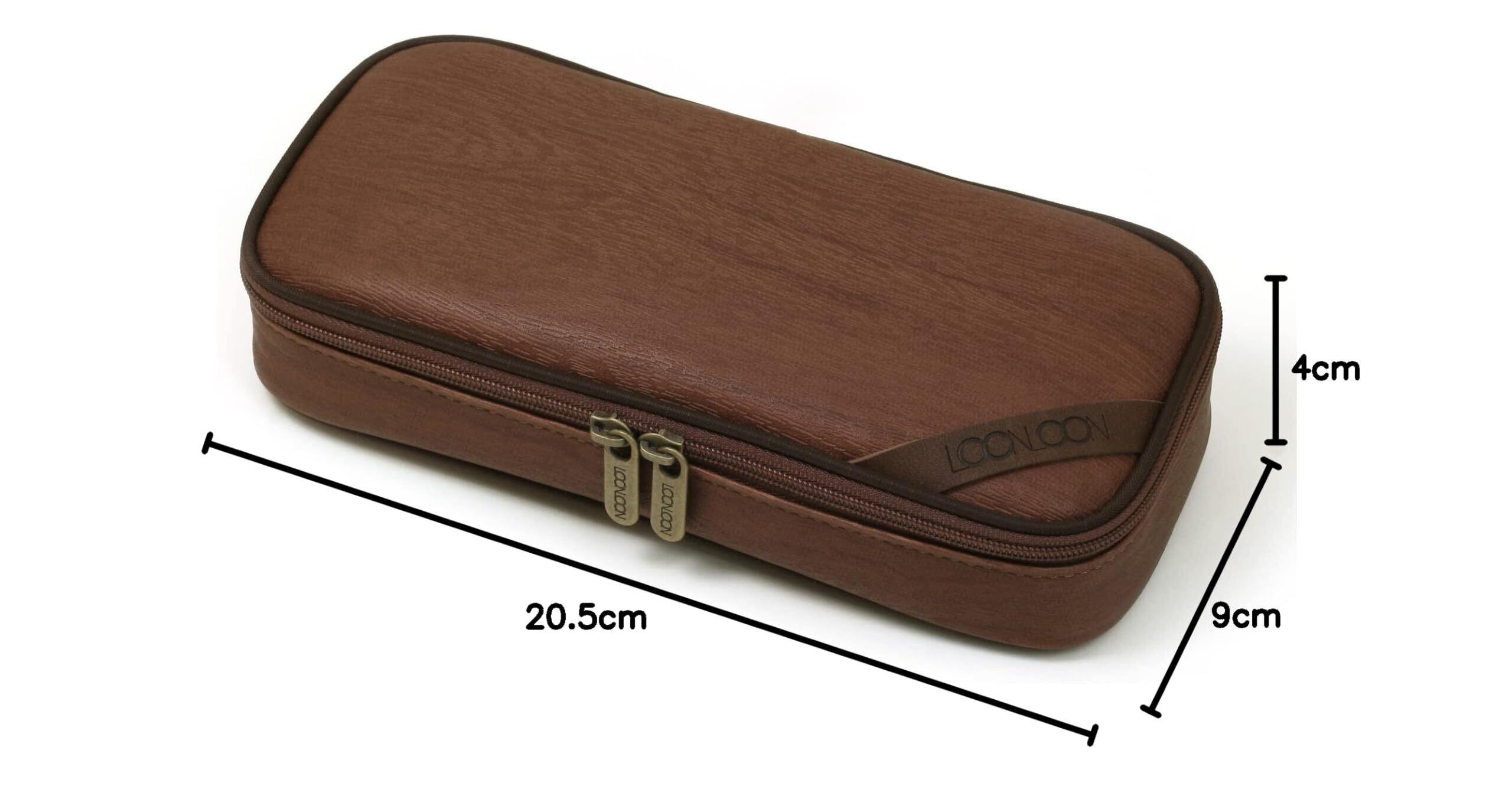 LOONLOON 664 ウッド ペンケース ブラウン 大容量 おしゃれ 二階建て 多機能 木目調