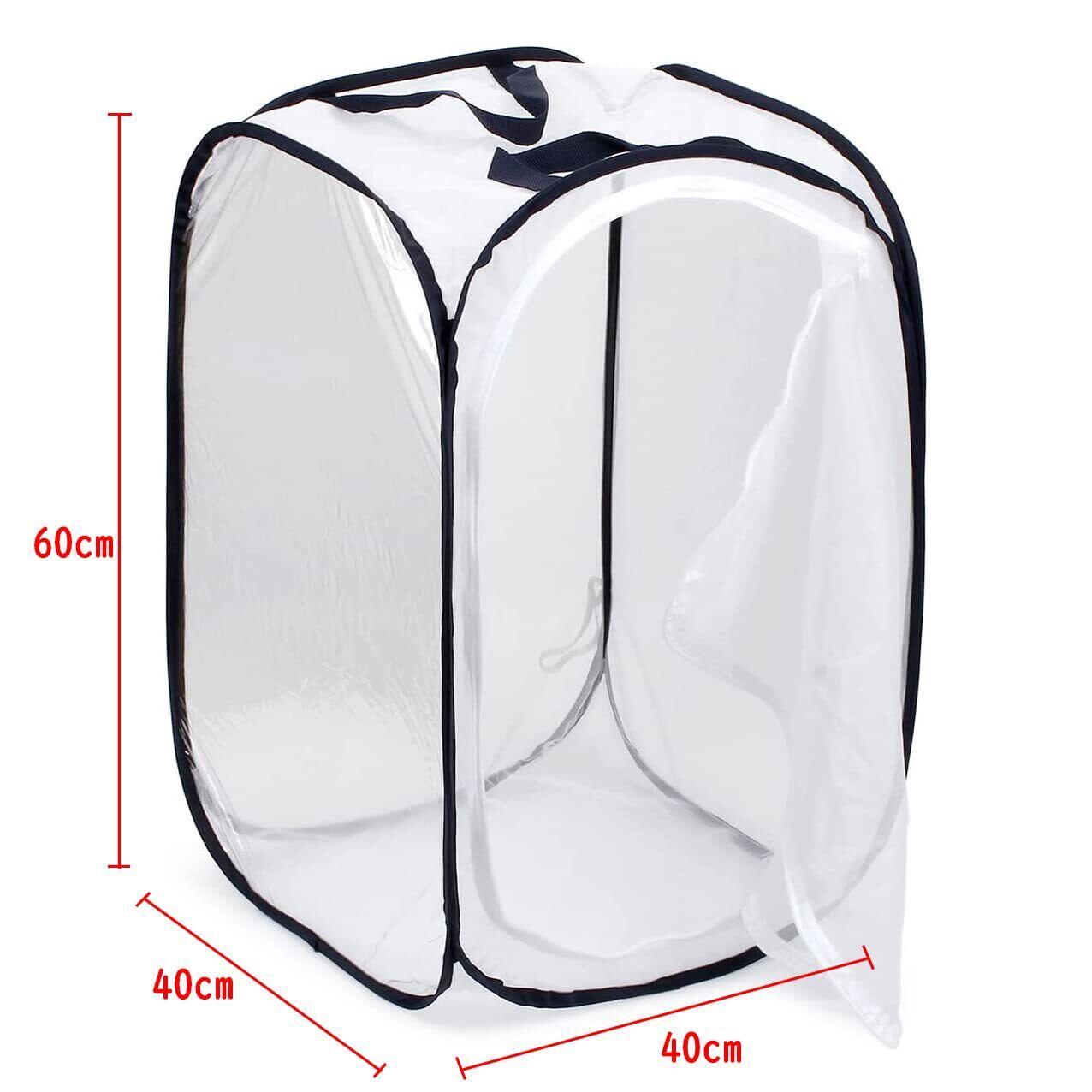 SATiNU 60*40*40CM 昆虫飼育箱 植物ケージ 標本箱 折り畳み虫かご 昆虫ケージ ポップアップハウジング 通気性 ネット 4サイズ 3色 (A 黒辺 ホワイト網) | BASE SHOP