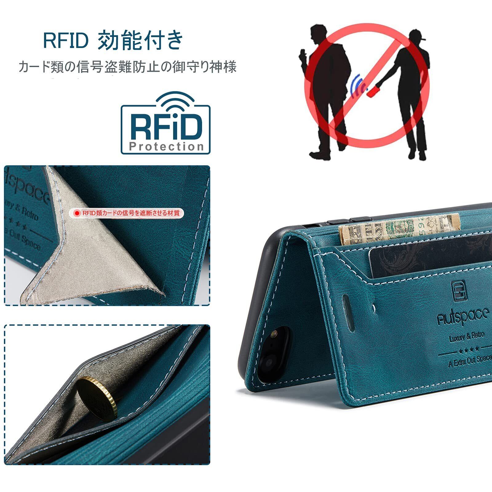 【磁気防止RFID功能 &機能性 4in1】磁気カードを保護するために磁器遮断功能があり、スキミング防止、不正アクセスから大切なクレジットカード、キャッシュカード、IDカードなどの個人情報を守れるRFIDスキミング防止の機能も備えています;①横置きスタンド機能:動画視聴でも手に持つ必要がなく、超楽々動画視聴が可能です;②財布型:ケースの裏側に一つのカードポケットとお札入れのフリーポケット一つあり、ショップでのポイントカード、交通機関でのスムーズな移動をサポートでき、 SUICA / PASMO / ポイントカード / メモ 等収納でき、ちょっととしたお出かけてもこれで十分です;③留め具なし、マグネット内蔵 ベルトなし、片手でも簡単操作できる;④ストラップホールはTPUケースの右下にあり、お好きなストラップを使用し、生活にもっと便利になり、または各種ボタンの使用、カメラ撮影、スピーカーホール等、すべての機能もそのまま立て掛けて稼働します;