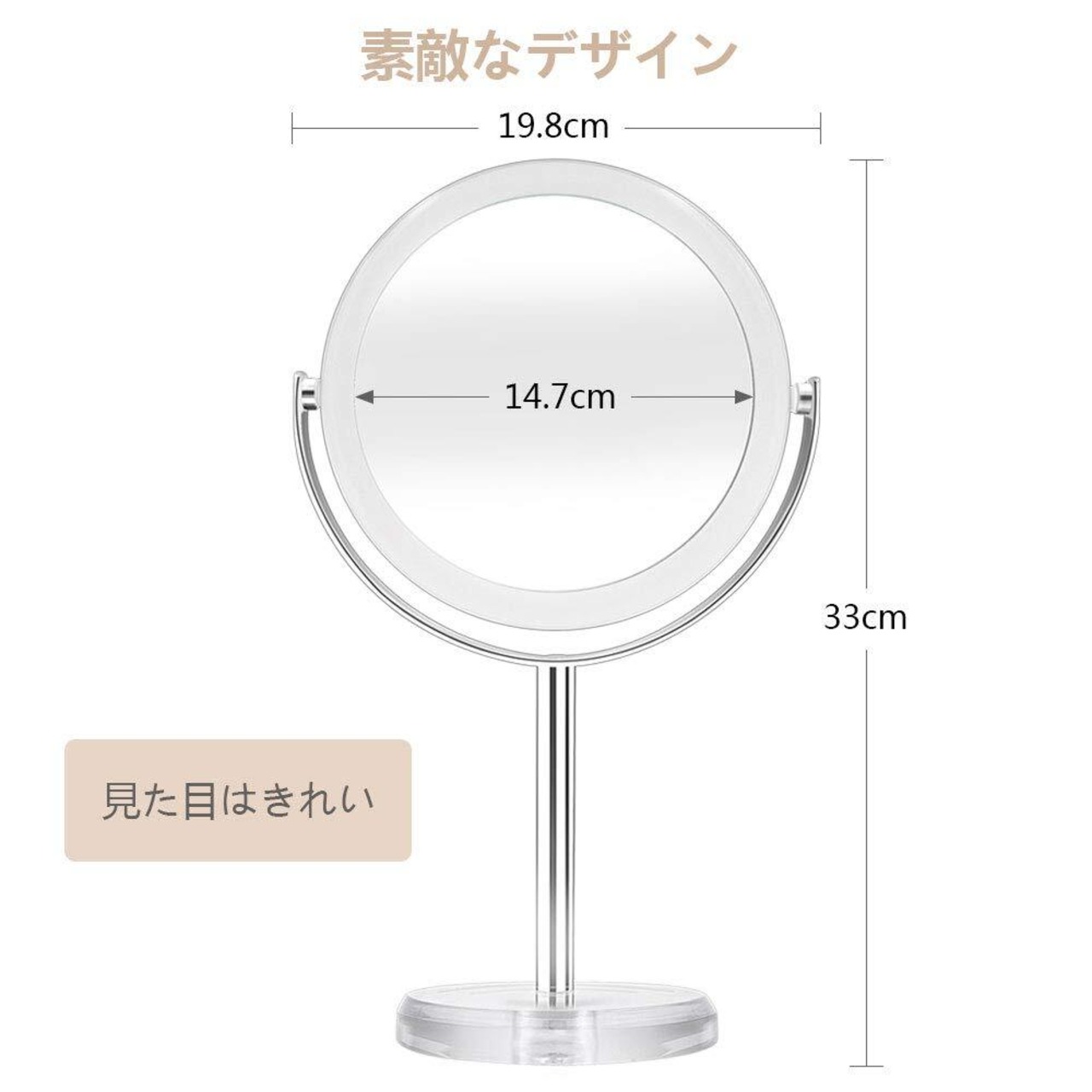 【等倍&10倍镜】両面鏡。一面は10倍拡大鏡、メイクする時に顔をクローズアップしてよく見える、視力の悪い方でも眼鏡無しで上手に使える。一面は同倍鏡、顔をクリアに映れる。ご希望によって適な10倍率のミラーと等倍のミラーの両面を切り替えできる。