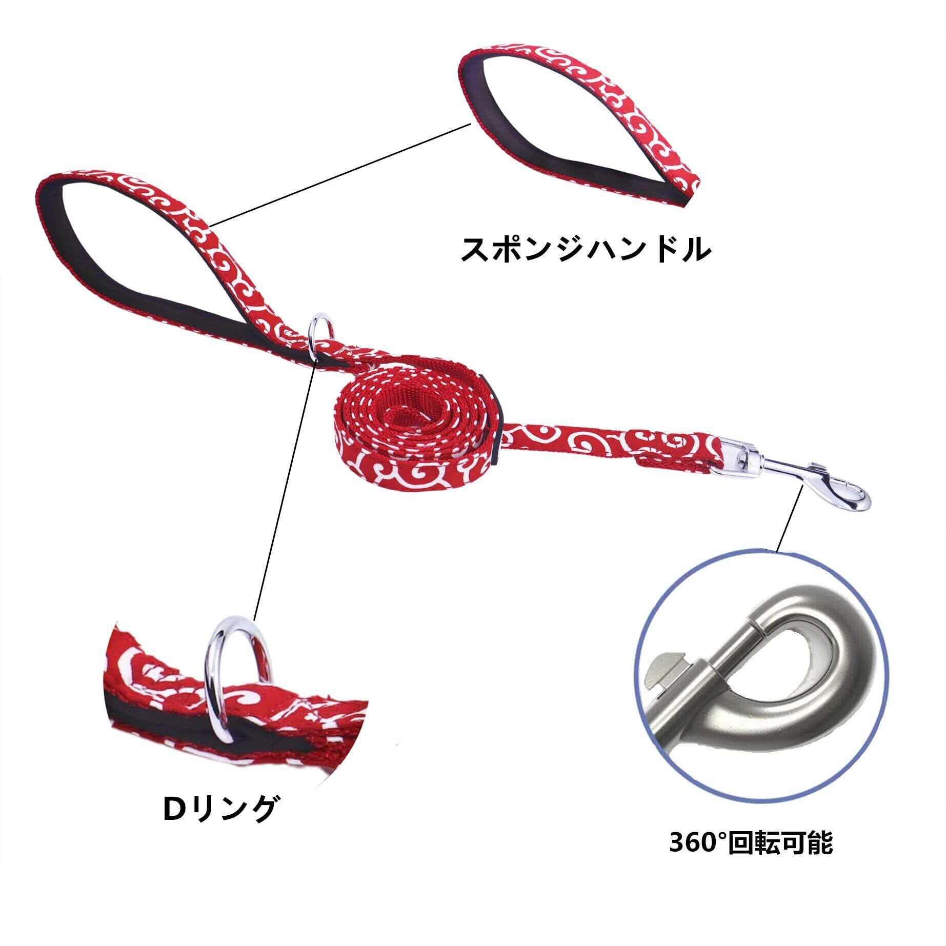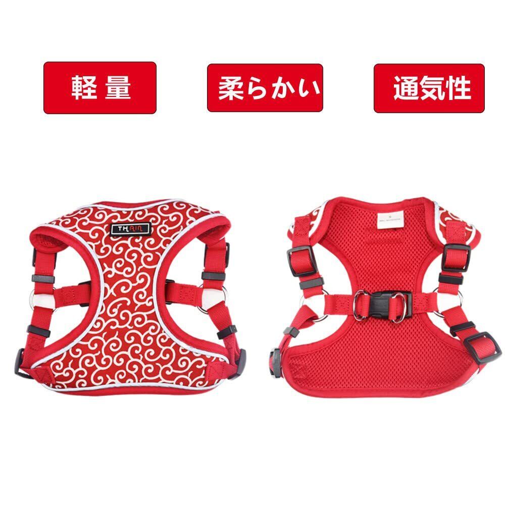 THAINハーネス&リードセット 胴輪 犬 ハーネス 引っ張り防止 犬 ハーネス 犬用ハーネス メッシュ地 通気性いい 犬のハーネス リード 犬 (唐草模様赤, L)