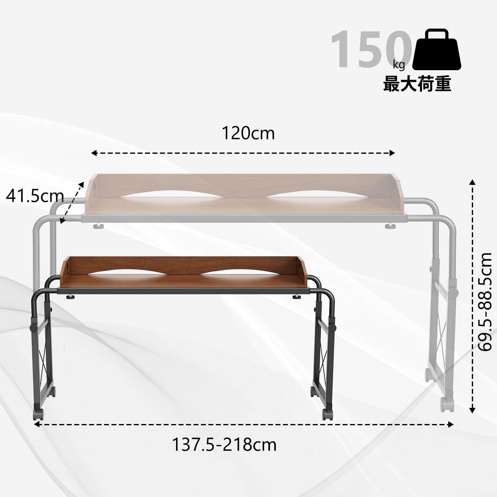 【机の横幅・高さ調節可能】ベッドとテーブルの幅と高さは調節可能な伸縮構造です。デスクのサイズは41.5*120cm、デスク部分の伸縮範囲は137-218cmです。高さは4段階で調節でき、調整範囲は69 ~ 88 cm(ボタンを調整するだけで幅と高さを簡単に調整できます)
