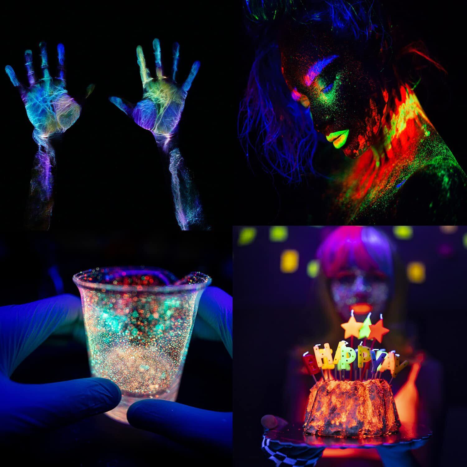 「ブラックライト:多様々な場合に使用可能」:紫外線ライトにて、395 nmの波長のため、UVブラックライトは裸眼では見えないスポットを表示することができます。赤ちゃんの衣類の付着を見分ける、蛍光剤残留物の検査、UVレジン硬化、服や化粧品に蛍光物質を見つけ、偽造印刷物の鑑定、点検など多様な場合に適用します。