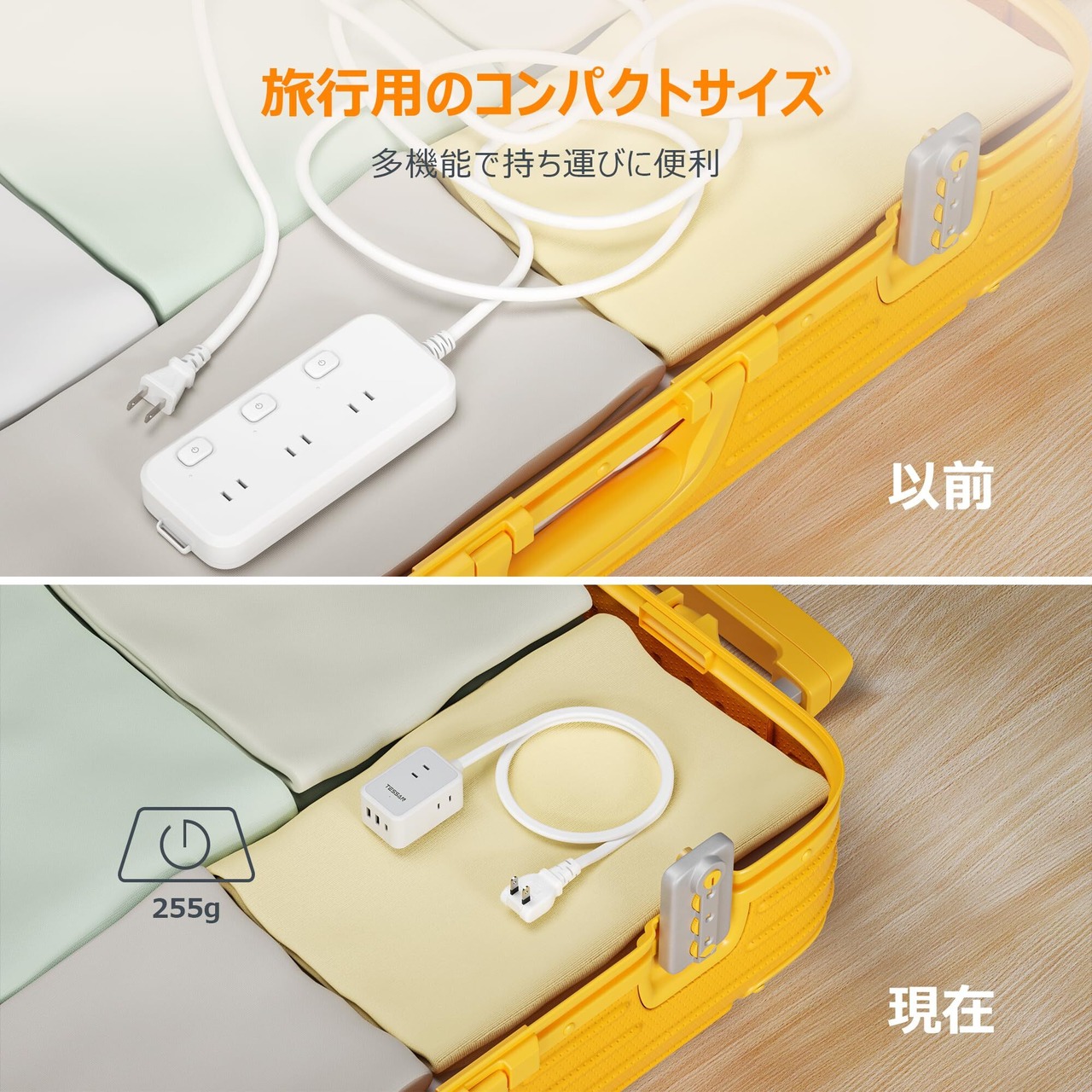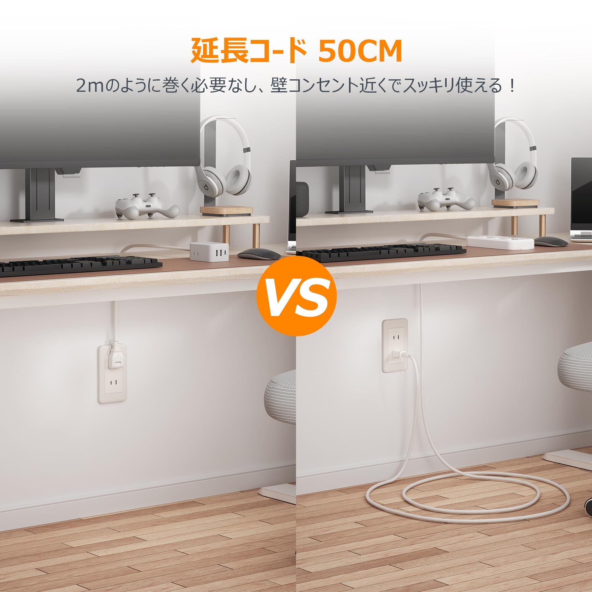 【携帯性に優れたデザイン】この延長コードはわずか50cmの長さで、一般的な2m、3m、5mの延長コードと比べてスペースを節約できます。デスク周りや狭い場所でもスッキリと配線でき、空間の無駄を防ぎます。軽量でコンパクトなので、カバンの中に入れてもかさばらず、持ち運びが簡単です。