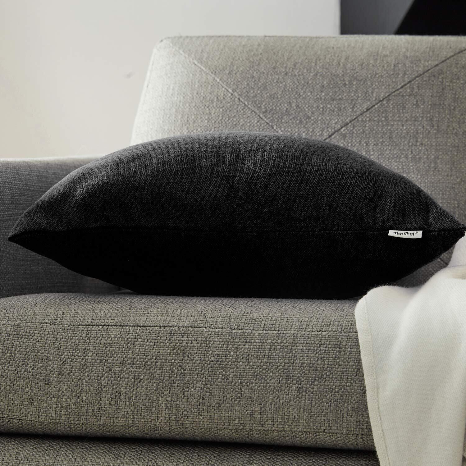 Topfinel クッションカバー リネンっぽい 50×50cm 北欧 おしゃれ 綿麻 無地 ソファ背当て 装飾枕カバー 座布団カバー ブラック 2枚セット(全18色)