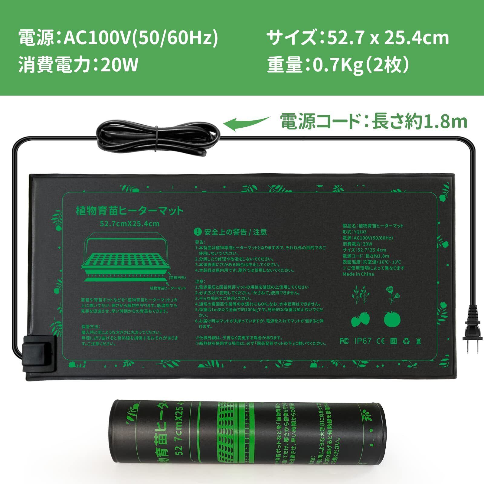 MARUNDA 園芸発芽マット 2枚セット 植物ヒーターマット 育苗器 温床関連 53×25.5cm