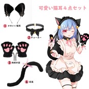 【豪華な4点セット】猫耳カチューシャ、肉球手袋、尻尾、チョーカーが豪華な4点揃いて、猫 コスプレの小物に不可欠なアイテムです