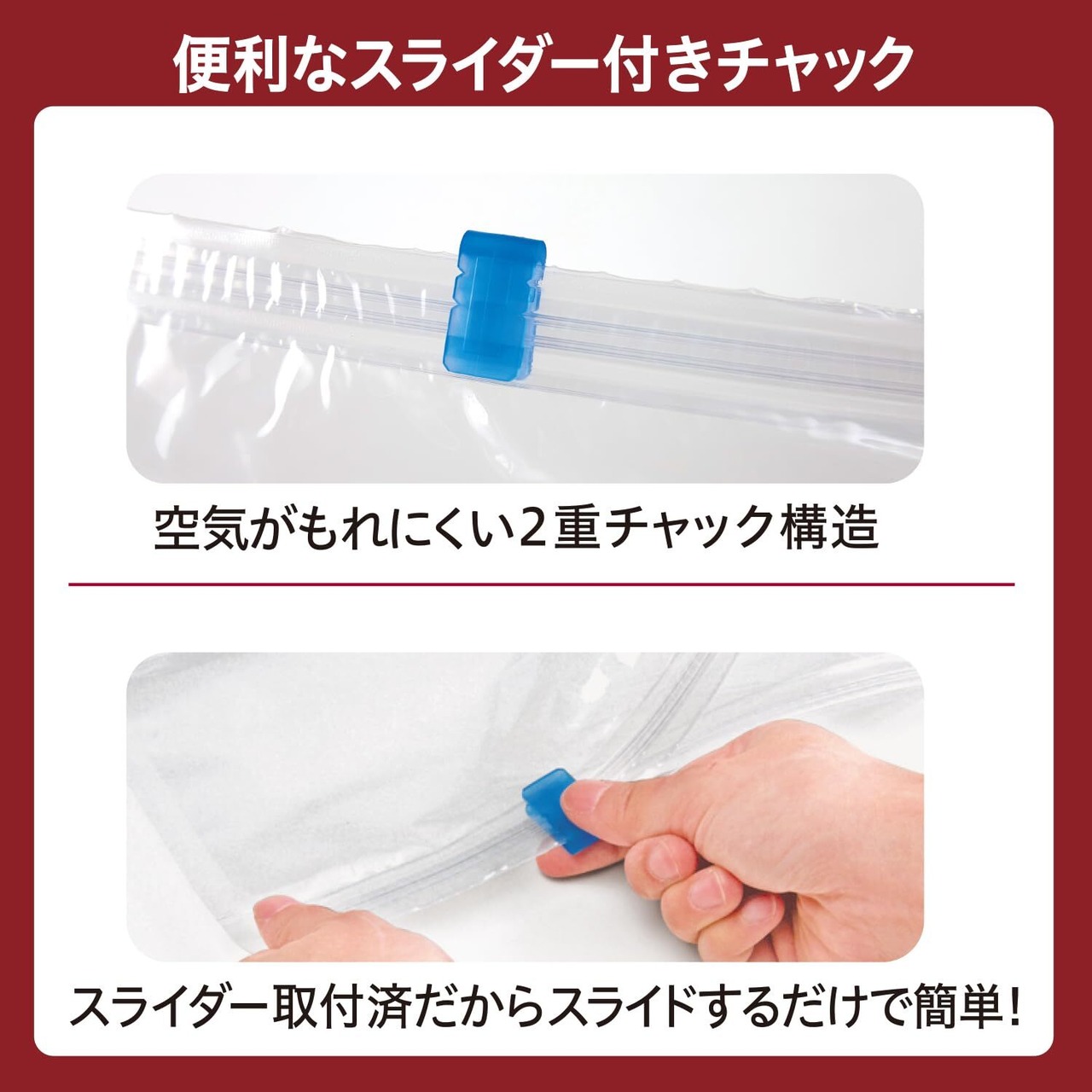 【スライダー付きで簡単圧縮】スライダー取付済みで、スライドするだけで簡単に圧縮可能。忙しい時でも手軽に使えて、ストレスフリーで収納できます。