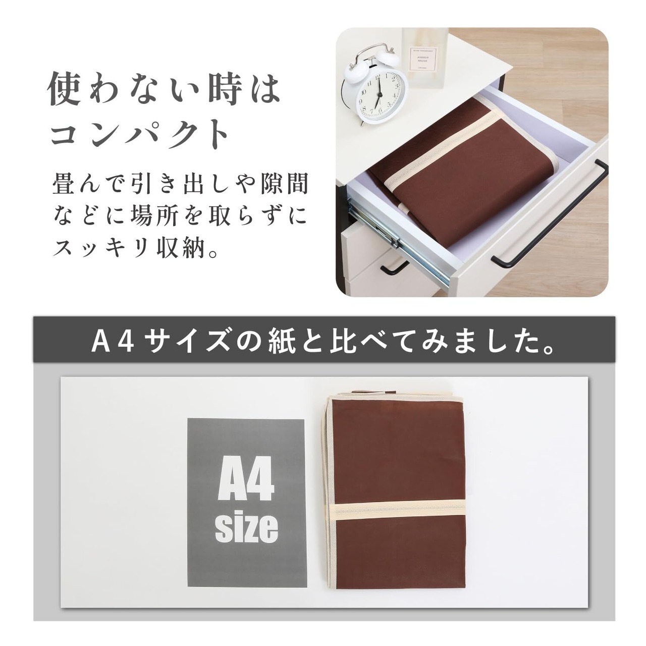収納しやすく持ち運びやすいバッグ型:持ち手付で持ち運びやすい。バッグ型で立てても収納できます。押し入れやクローゼットのすき間収納に。