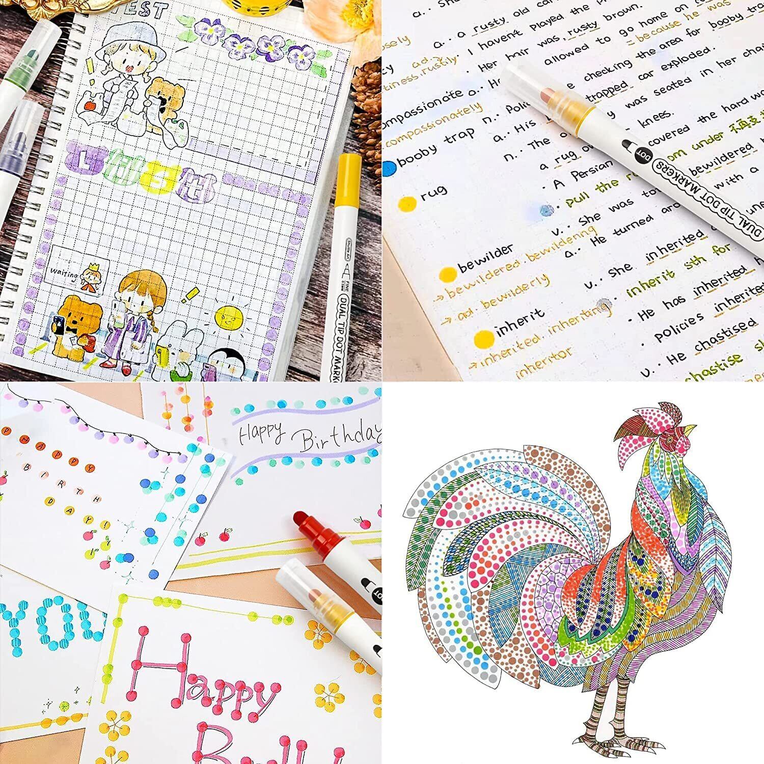 Shuttle Art ドット・極細ツインペン 水性マーカーペン 18色セット ダブルチップ 太字細字両用 鮮やか ハイライト マーキング ライナー 丸 水玉 イラスト ノート ジャーナル 手帳 日記 塗り絵 落書き アルバム 手作りカード 年賀状 画材 握りやすい ケース入り プレゼント 学校 オフィス用品 子供 女の子 大人 | BASE SHOP