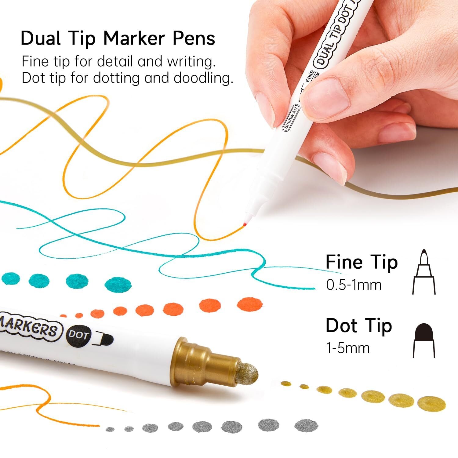 Shuttle Art ドット・極細ツインペン 水性マーカーペン 18色セット ダブルチップ 太字細字両用 鮮やか ハイライト マーキング ライナー 丸 水玉 イラスト ノート ジャーナル 手帳 日記 塗り絵 落書き アルバム 手作りカード 年賀状 画材 握りやすい ケース入り プレゼント 学校 オフィス用品 子供 女の子 大人
